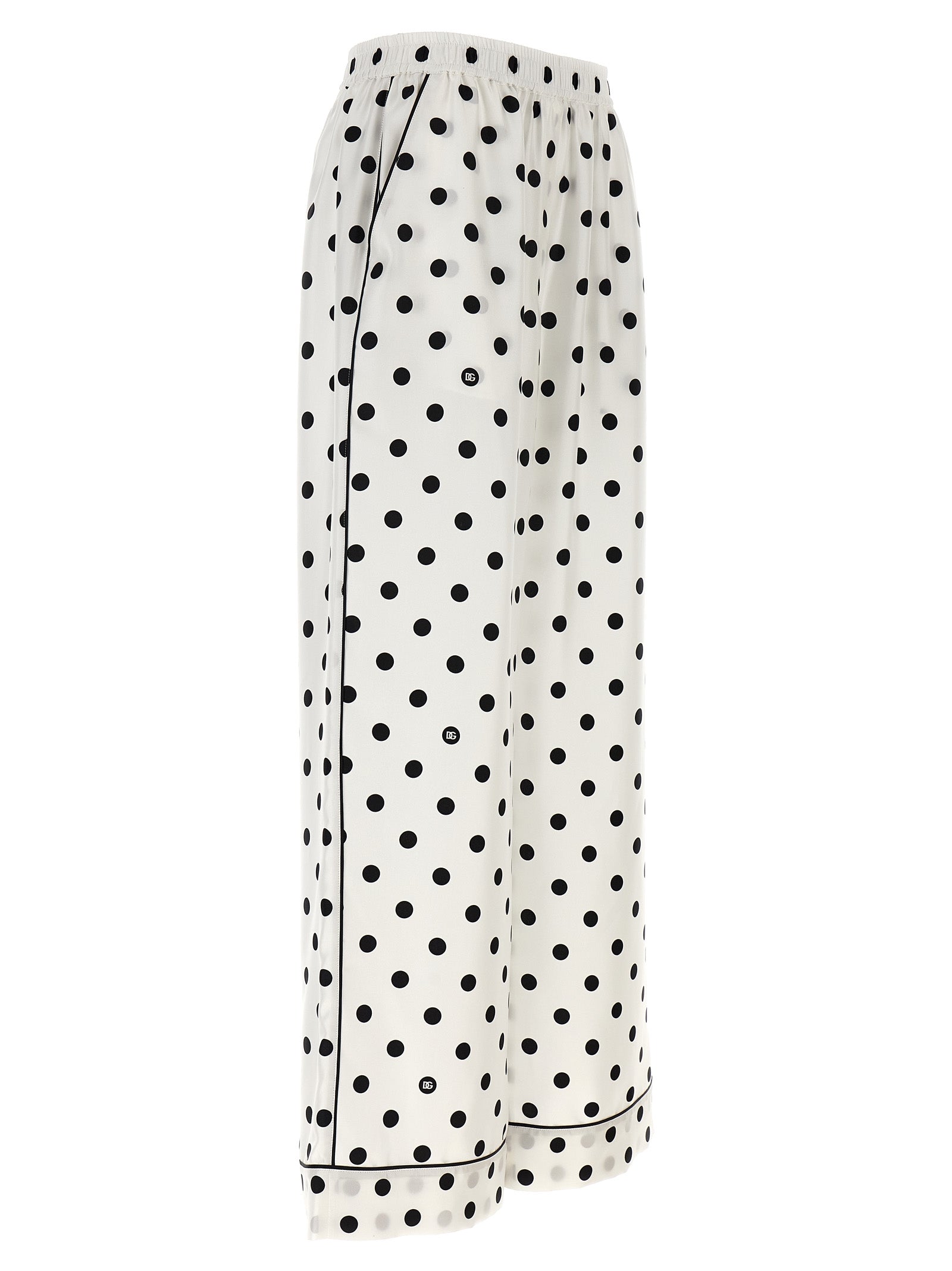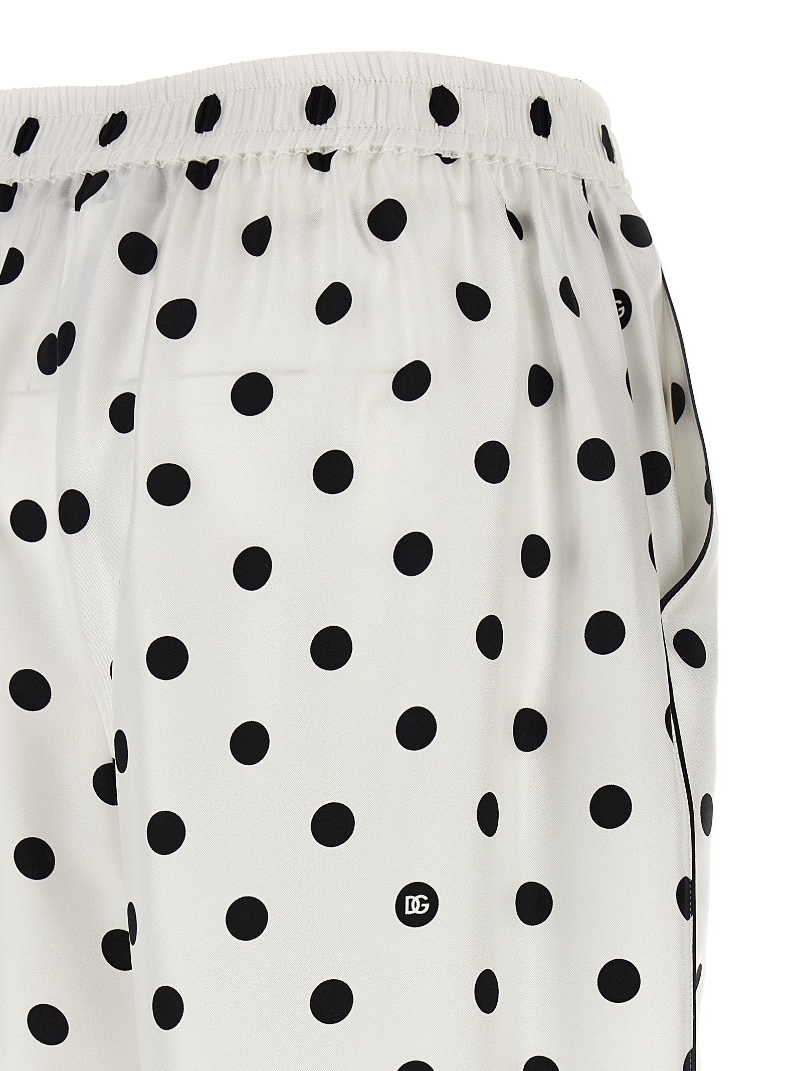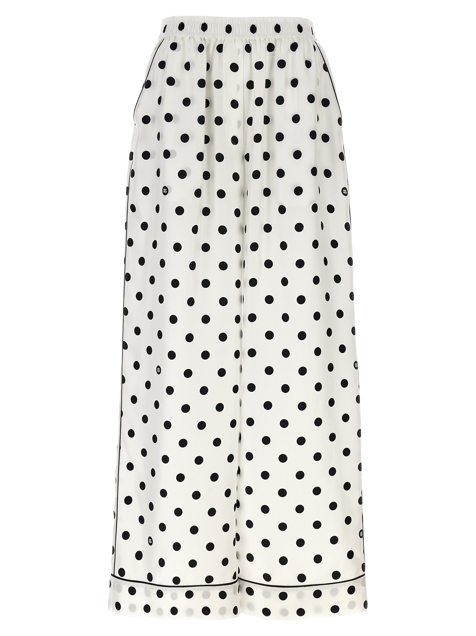 'Mambo' pyjamabroeken in polka dot print zijden twill met elastische tailleband, zakken.