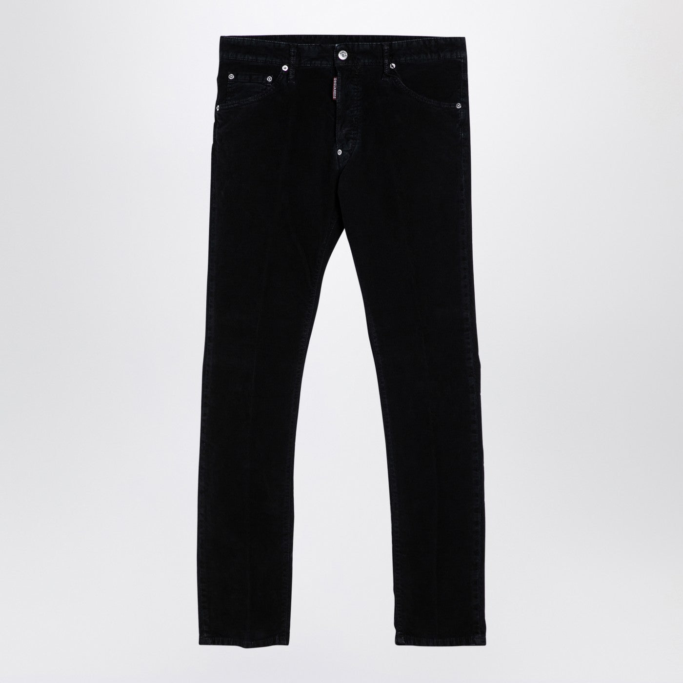 Black Cotton Denim Jeans van DSquared2 met een voorste knop en ritssluiting, riemlussen, twee achterzakken, drie voorzakken, een achterste patch en een voorste logo -plaquette.