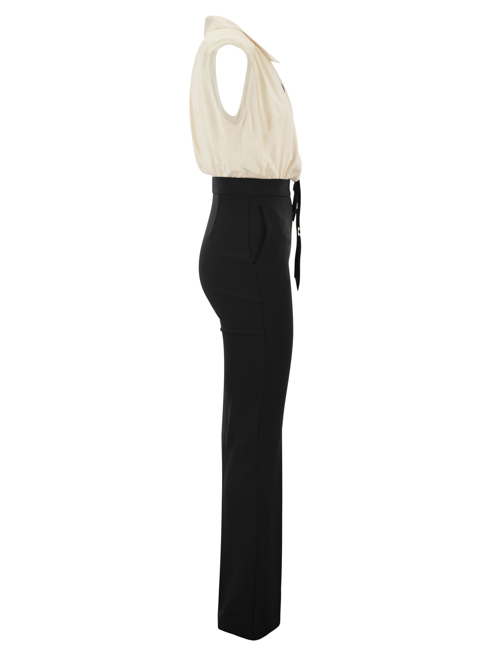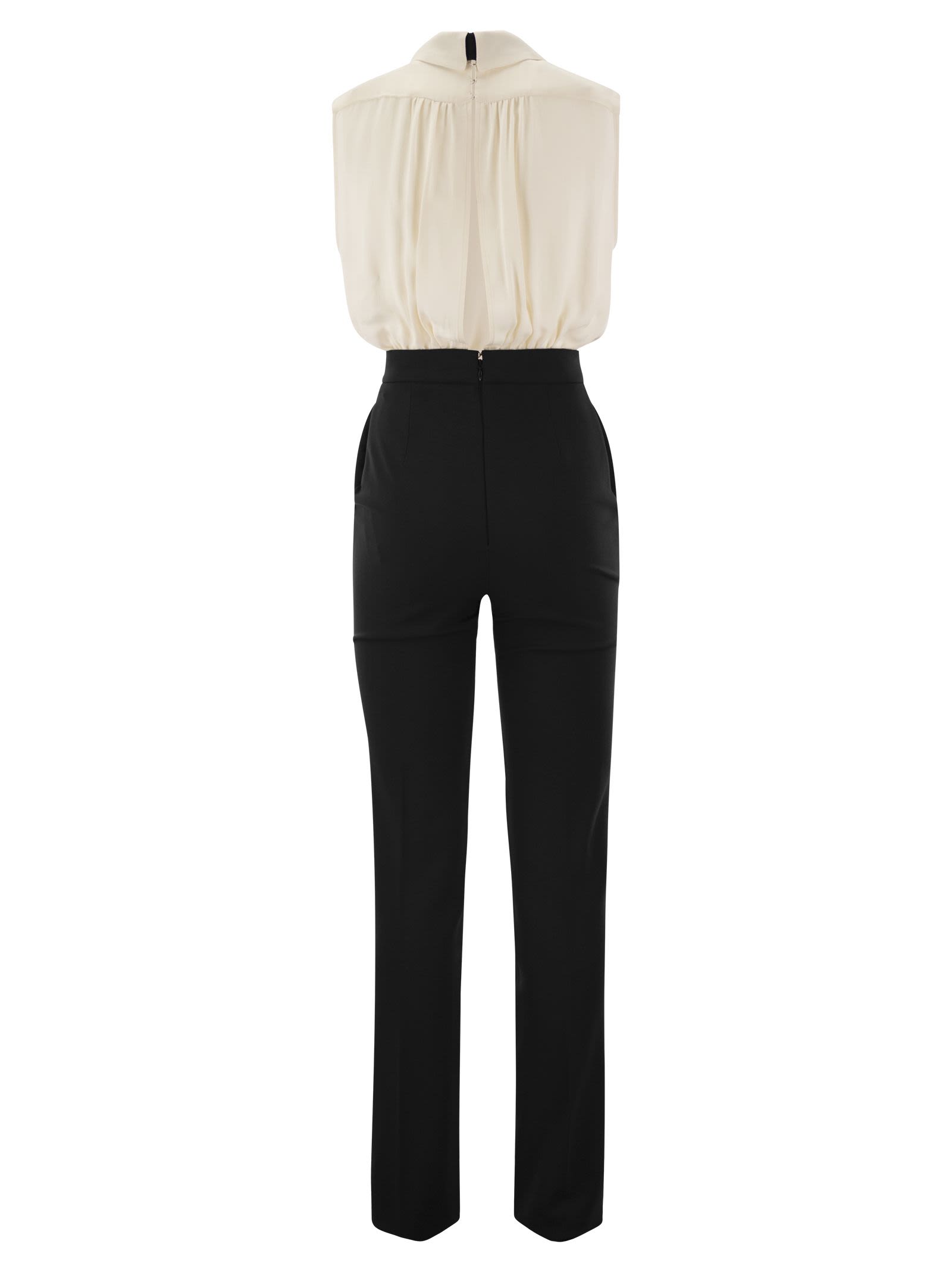 Pak bestaande uit mouwloos shirt in viscose georgette en rechte broek in stretch crêpe. Het beschikt over een afneembare stropdas verfraaid met gouden metalen logo -plaques. - Gevoerde schouderbanden - Onzichtbare broek Zip - Haak voor neksluiting - Slim Fit - Shirt Detachable van Trousers Designer ID: TU00541E2 E84