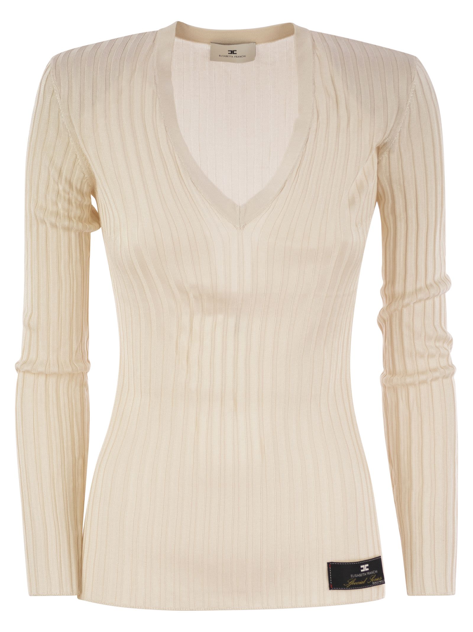 Elisabetta franchi glanzende viscose geribbelde trui
