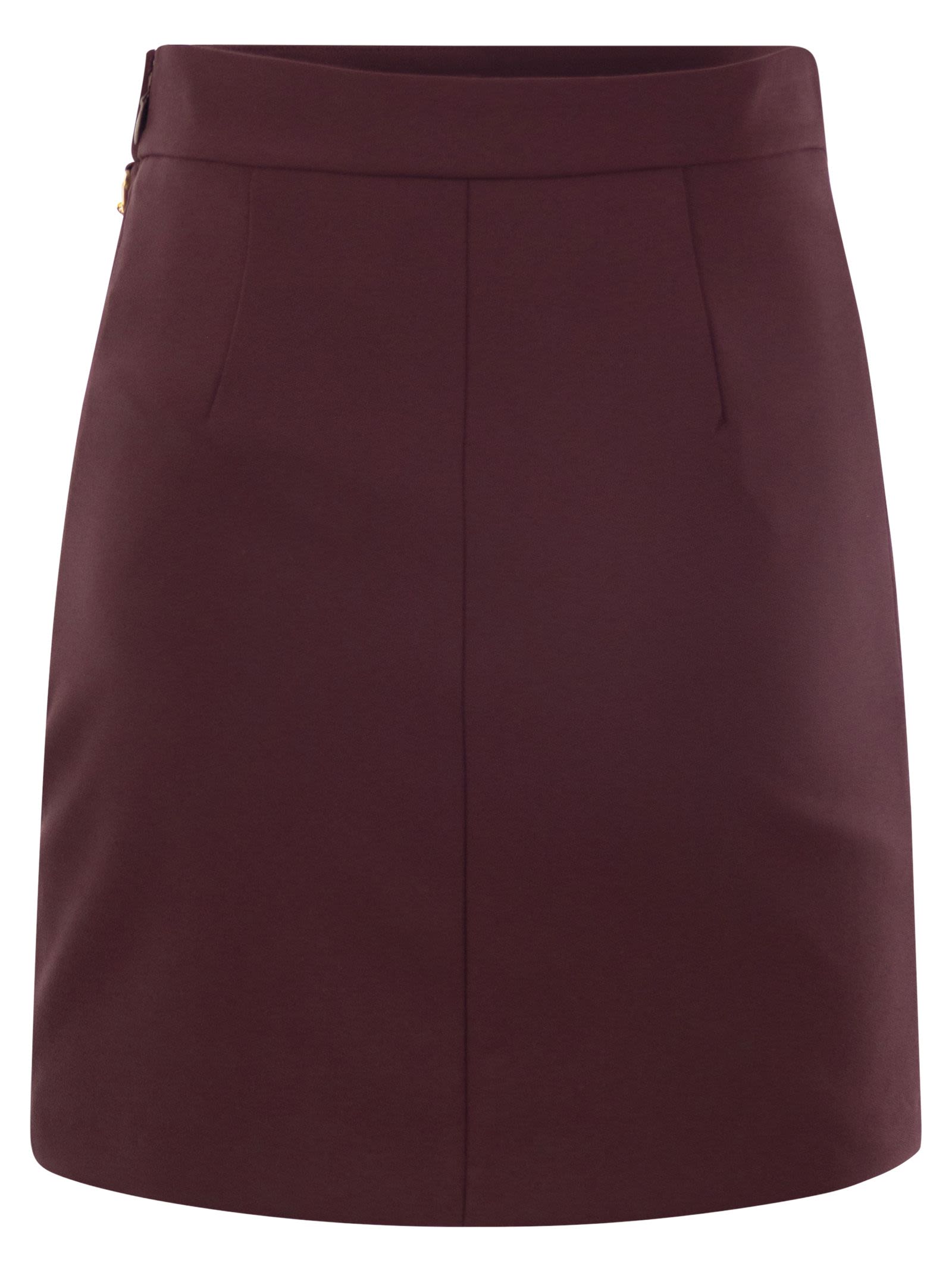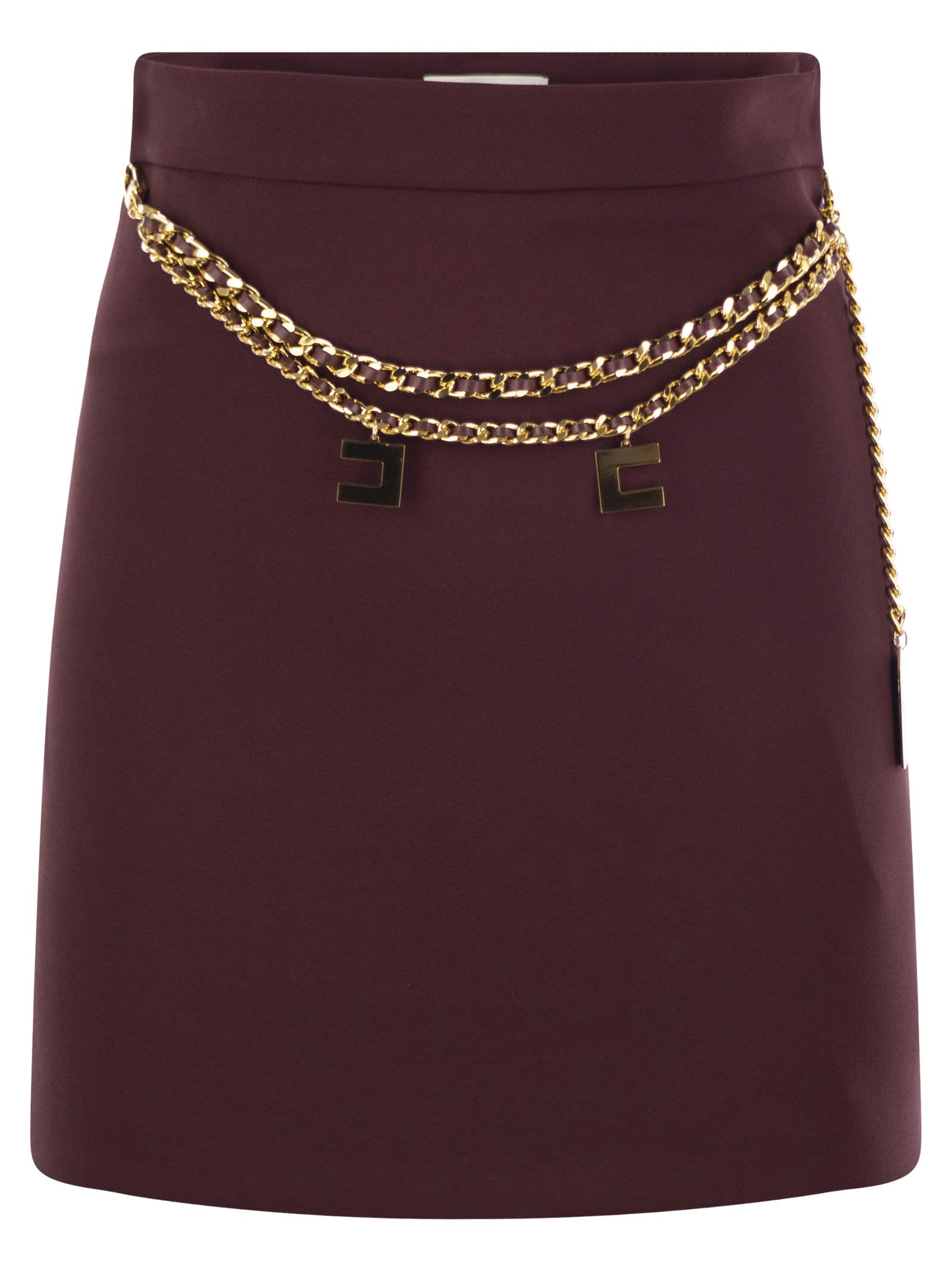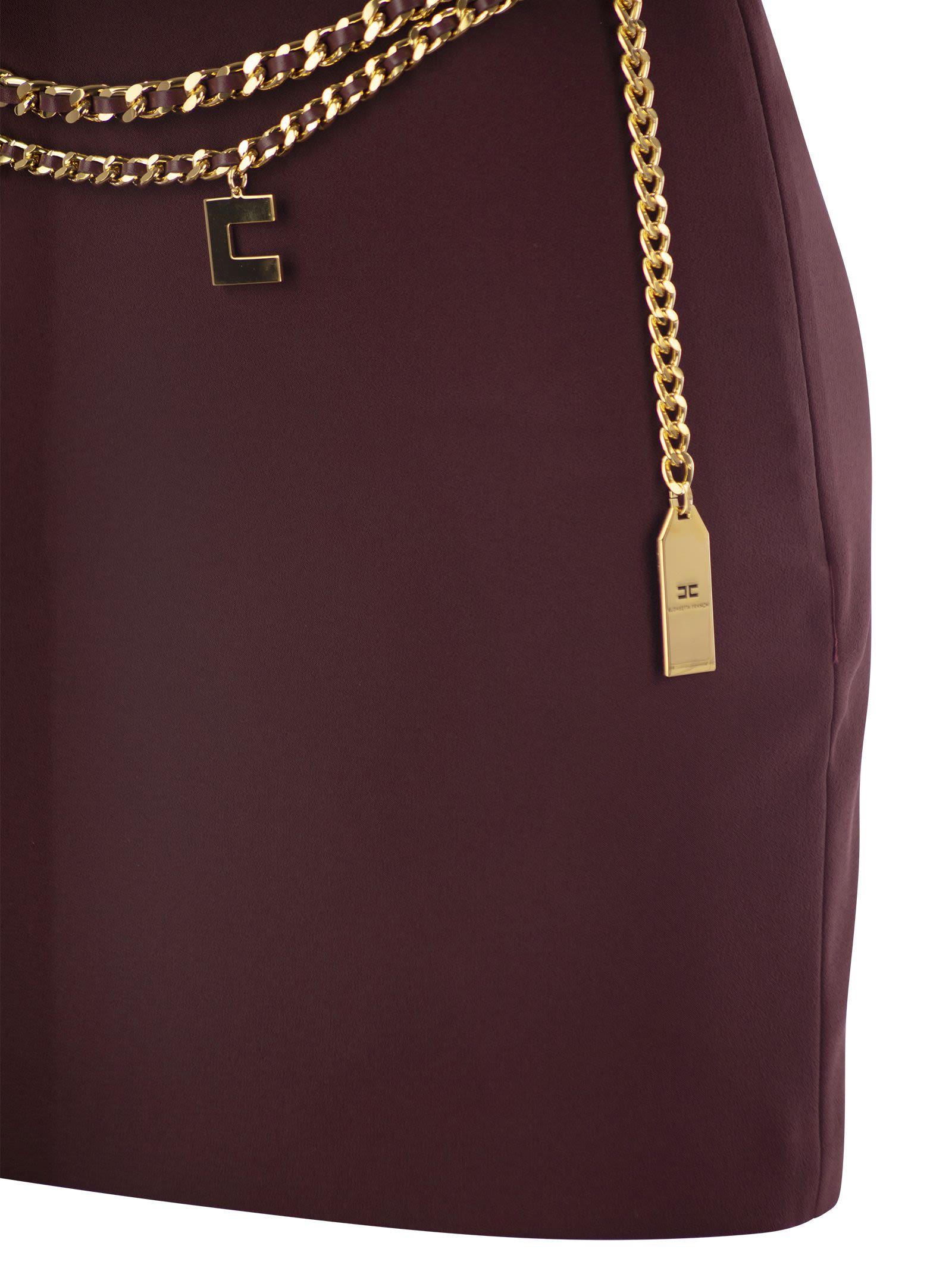 Dubbel stretch crêpe minirok. De taille wordt benadrukt door een schroefdraadketengordel en charmes met gouden metalen logo. - Satijnen voering - Onzichtbare rits aan de zijkant - Gold Metal Accessoire - Slim Fit Designer ID: GOT3646E2 CG3