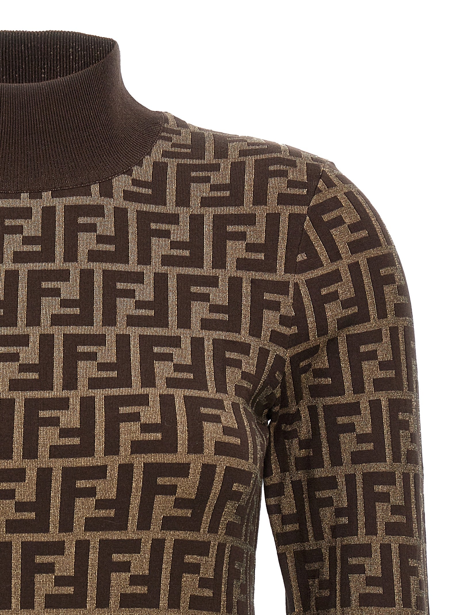 Katoenen trui met all-over 'ff' logo-patroon, hoge nek, lange manchethonden.