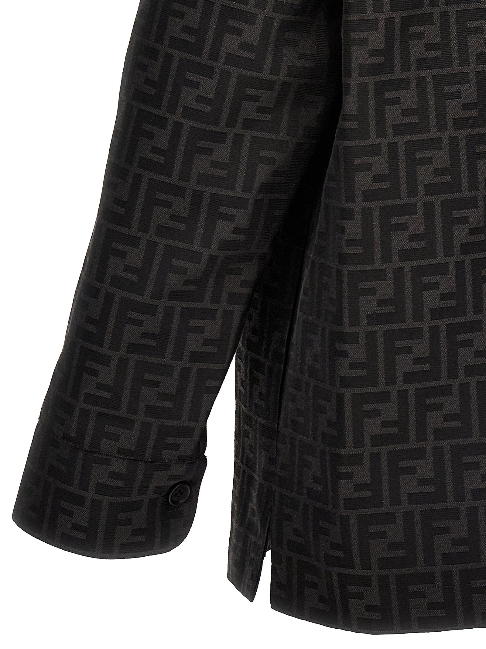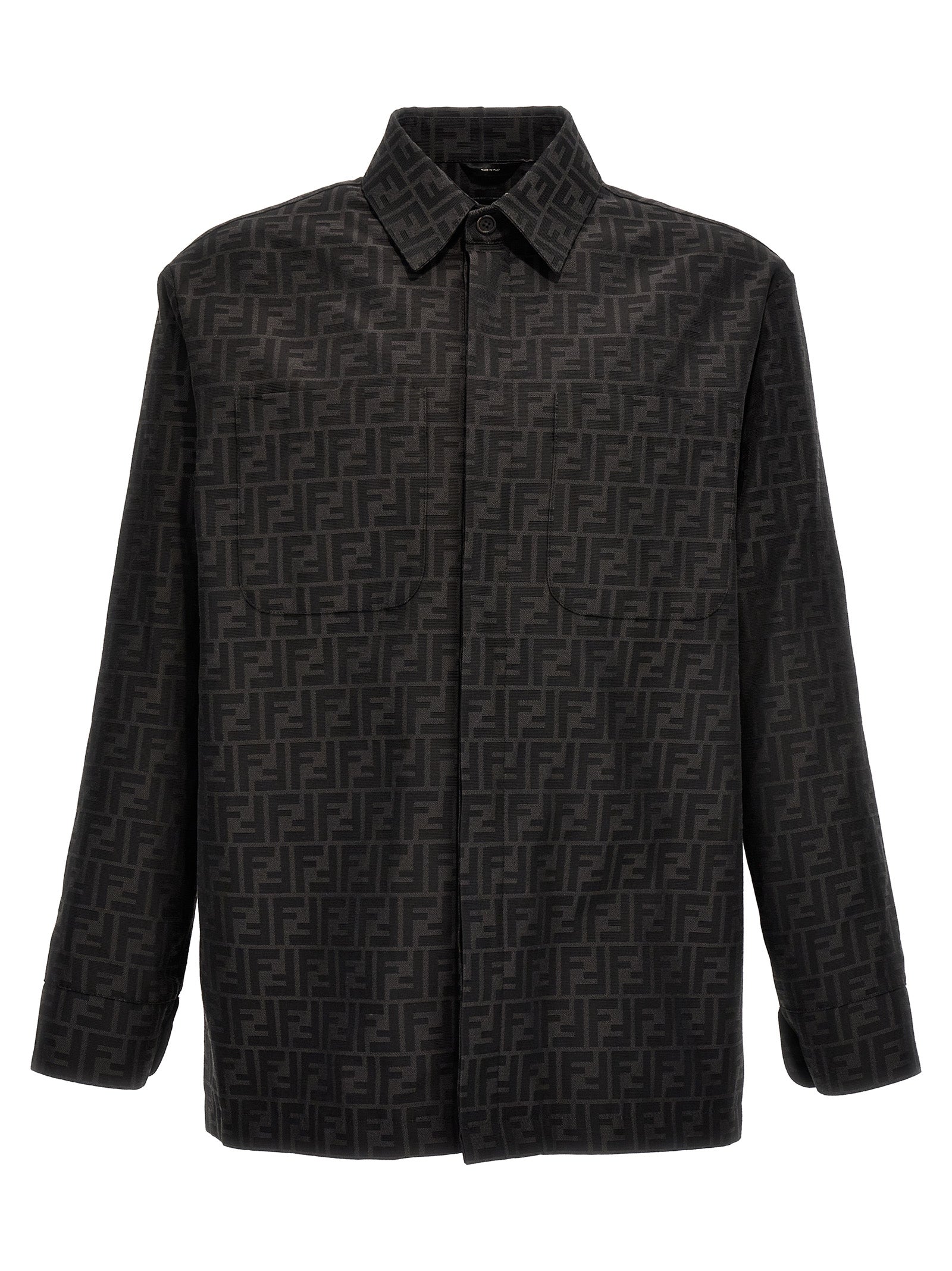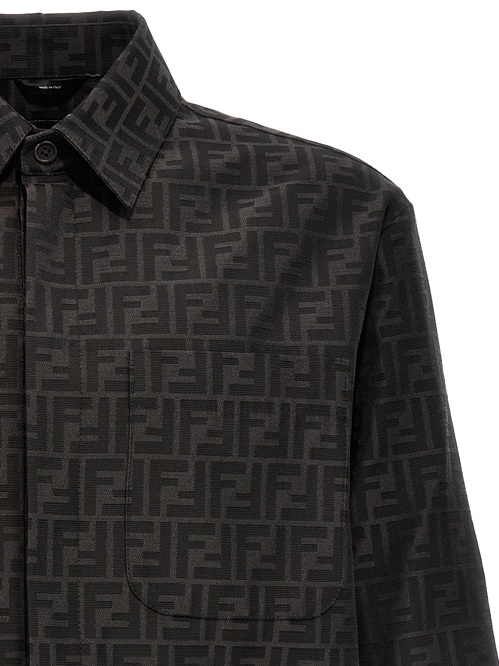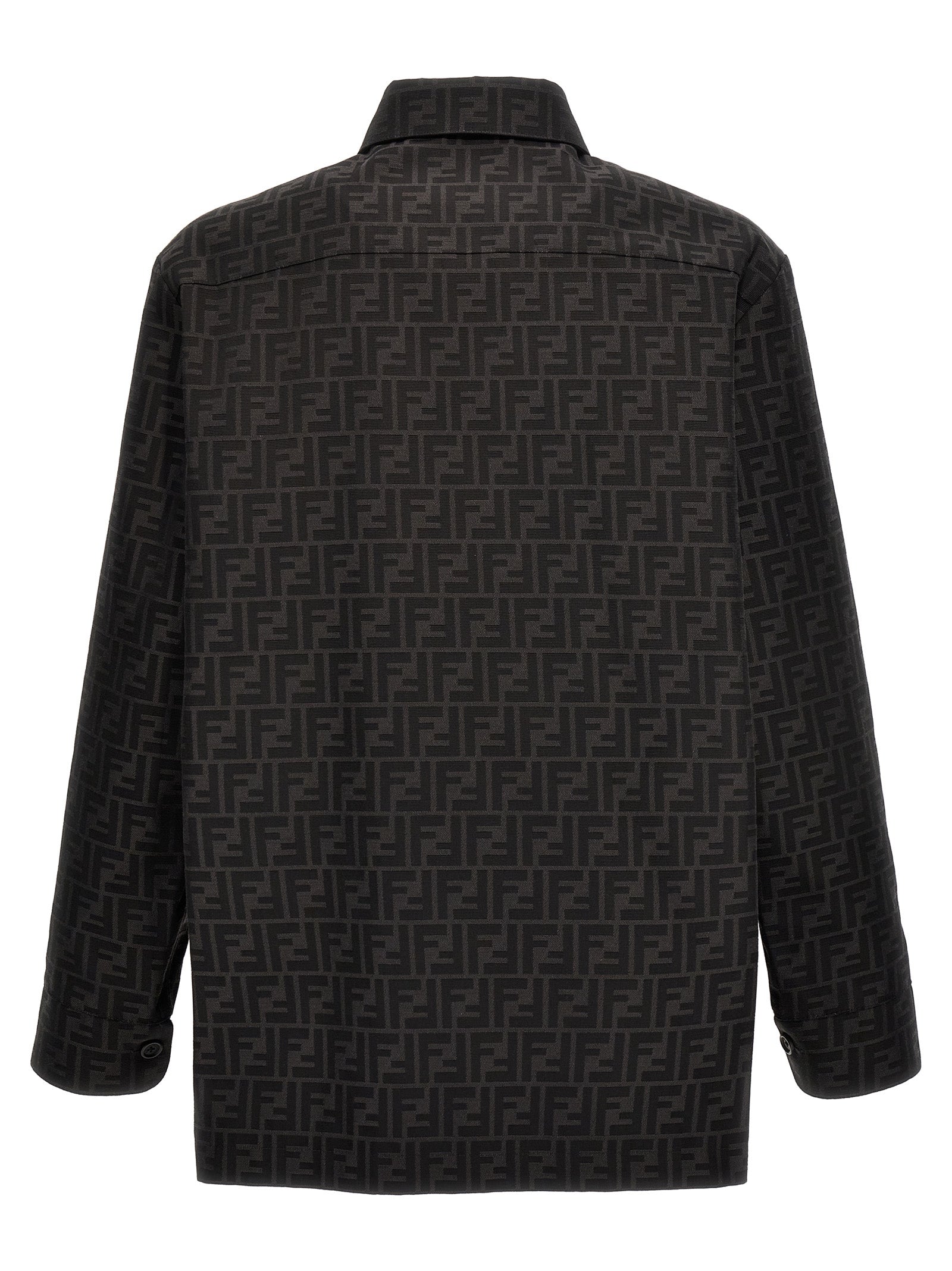 'Go-to' jas met shirt kraag en patchzakken op de borst, verborgen knopsluiting, gemaakt van stof met all-over jacquard FF-patroon.