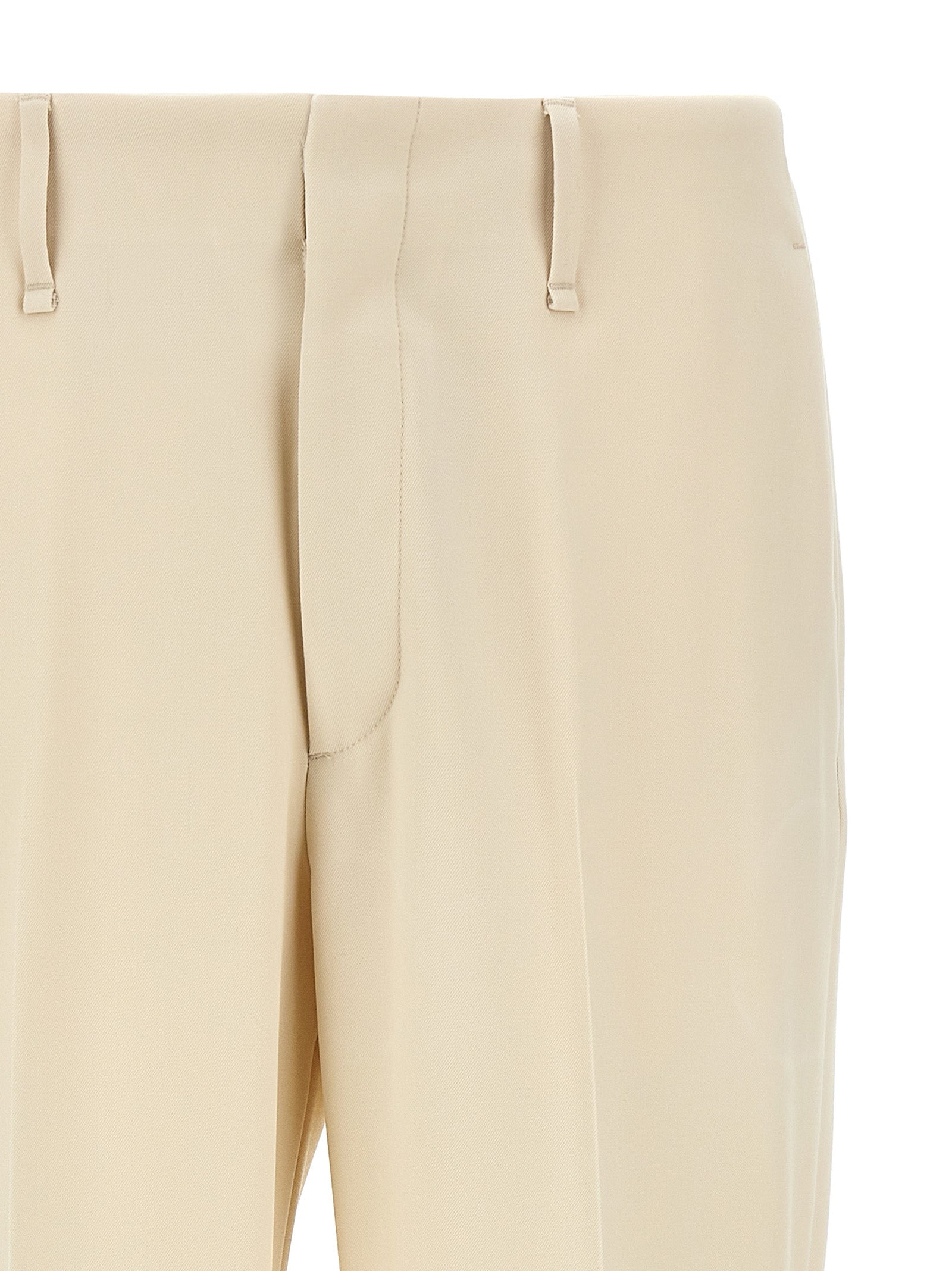 Wollen gabardine broek, rechte been, uitgerekte plooi, zakken, haak- en knoop -zipafsluiting.