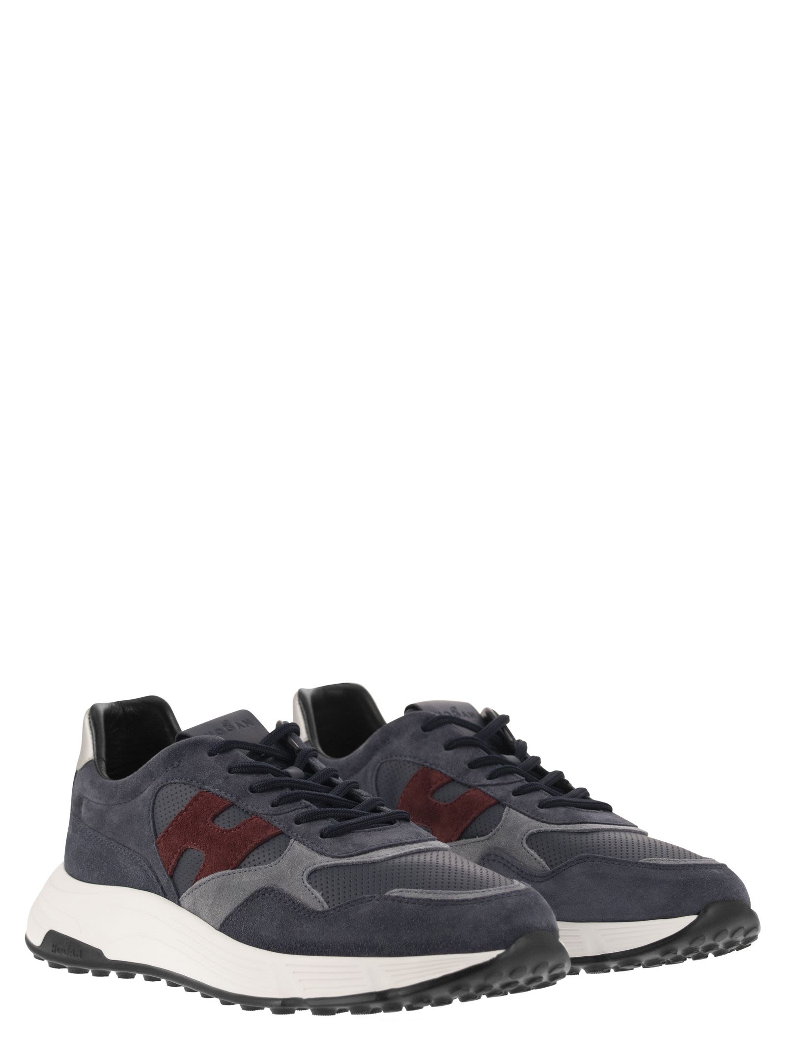 Gekenmerkt door vloeiende en pittige vormen, combineren de Hogan Hyperlight -trainers de lijnen van een joggingschoen met elementen van een stedelijke roeping. Het suède en glad lederen bovenwerk, met geponste inzetstukken en laterale H, roept het merk op 's iconische details. Een ultra-dynamisch model met een middenzool van het traagschuim en een lichte zool met schoenplaatjes die het historische H383-model herinneren. - Gemaakt in Italië - Suede Leather Bovenwerk - Glad lederen inzetstukken - Suede lederen lateraal H - Laminated lederen details - 8 mm Memory Foam Footbed - Rubber Sole - Fabric Pouch Inbegrepen Designer ID: HXM5630er90S9D914K