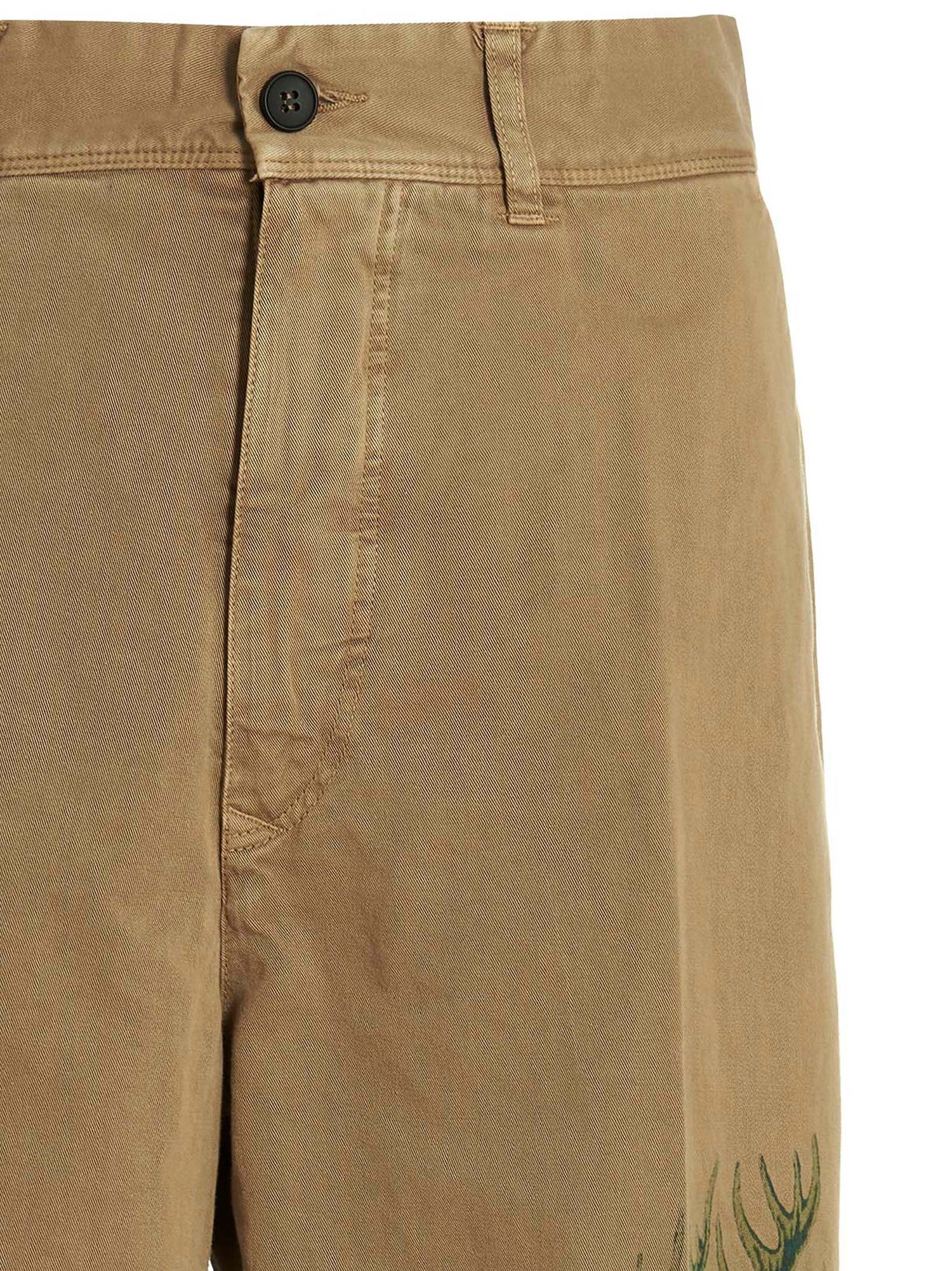Katoenen broek met een afdruk, een rits en knoopsluiting, zakken.