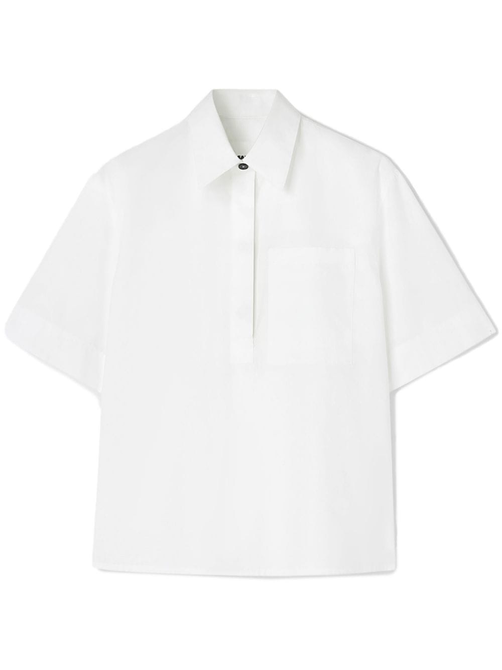 wit katoen puntige platte kraag voorste knop placket druppel schouder halve lengte mouwen rechte zoom