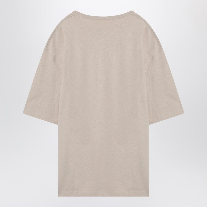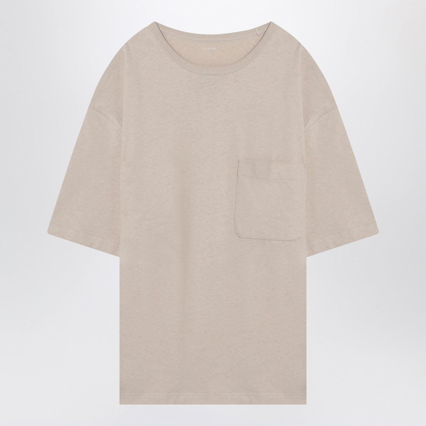 Beige katoen en linnen T-shirt van Lemaire, met een patchzak op de borst, korte mouwen, een brede geribbelde bemanningshals en een boxy fit.