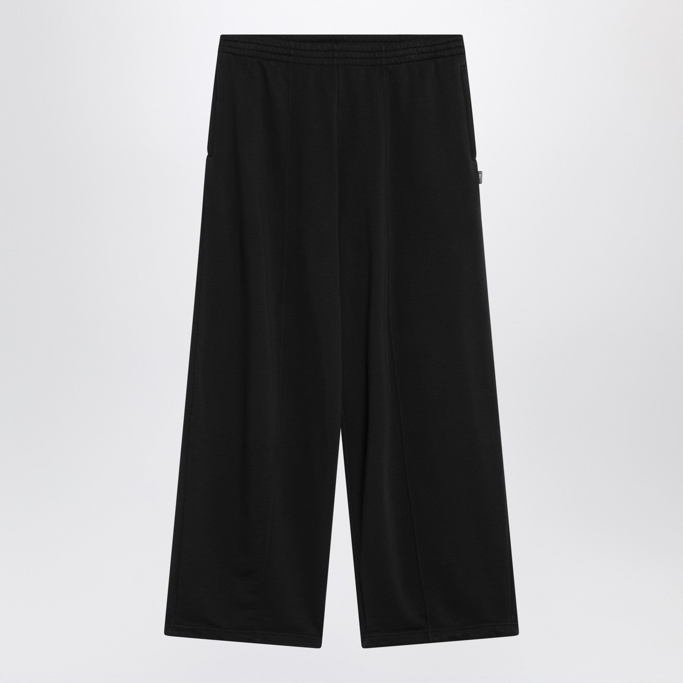 Brede MM6 Maison Margiela Jogging Pants in Black Cotton Blend, met een elastische taille, twee zijkapzakken, een achterste patchzak en een toon-op-tone geborduurde numerieke kenmerkende MM6 aan de achterkant.