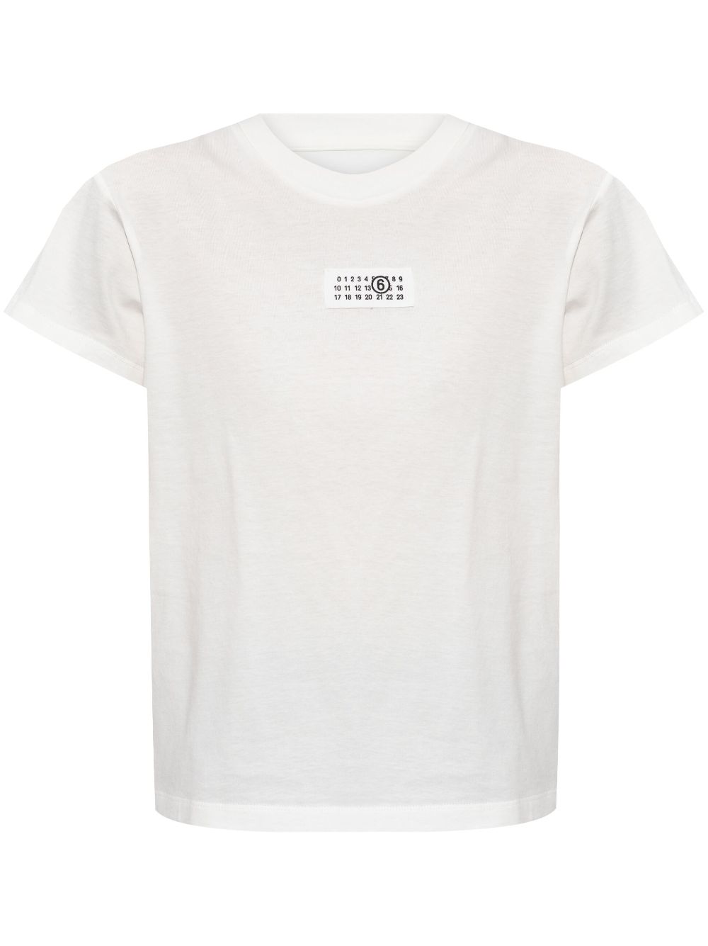 white cotton jersey texture signature numbers motif crew neck short sleeves straight hem