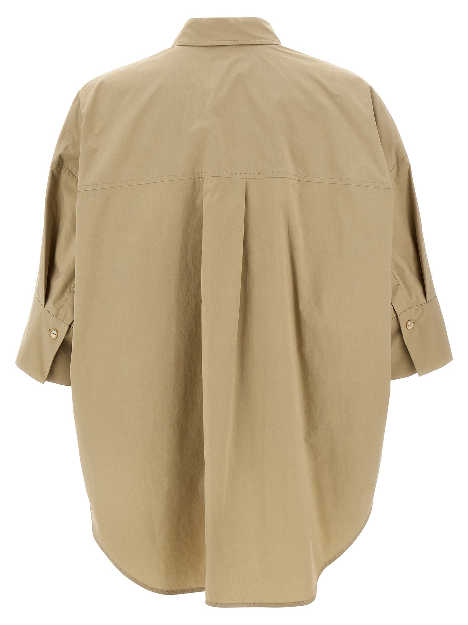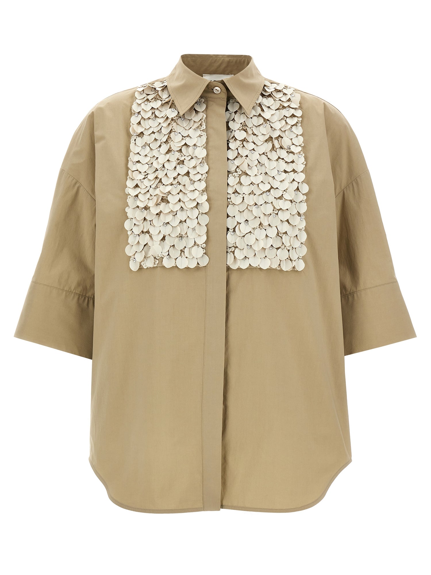 'Canyox' katoenen shirt met maxi pailletten plastron, knoopsluiting, brede korte mouwen met manchetten en gevallen schouders.
