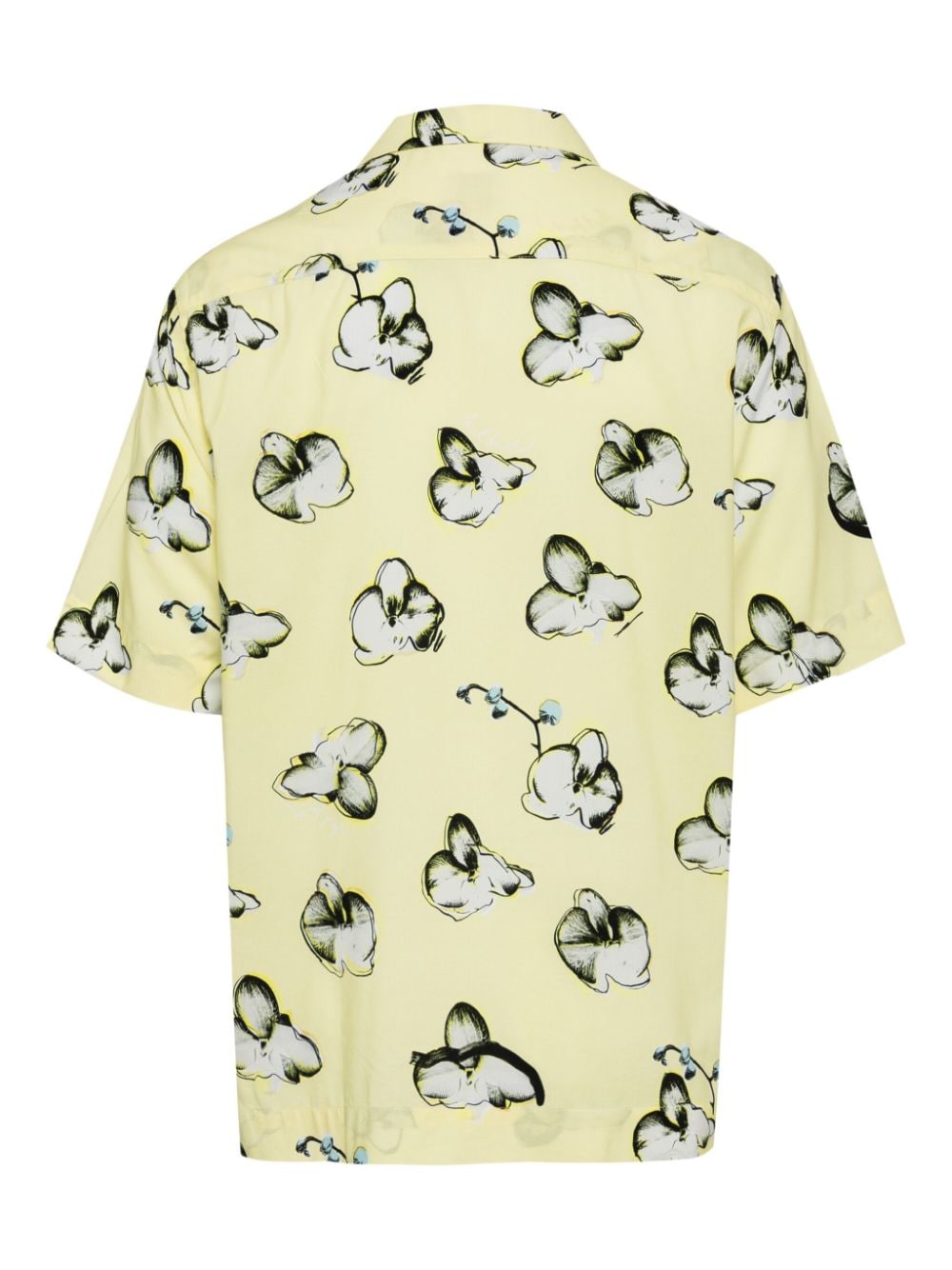 Boter Gele Poplin-textuur All-over bloemen afdrukken Gotte kraag voorste knop Bevestiging Korte mouwen rechte zoom