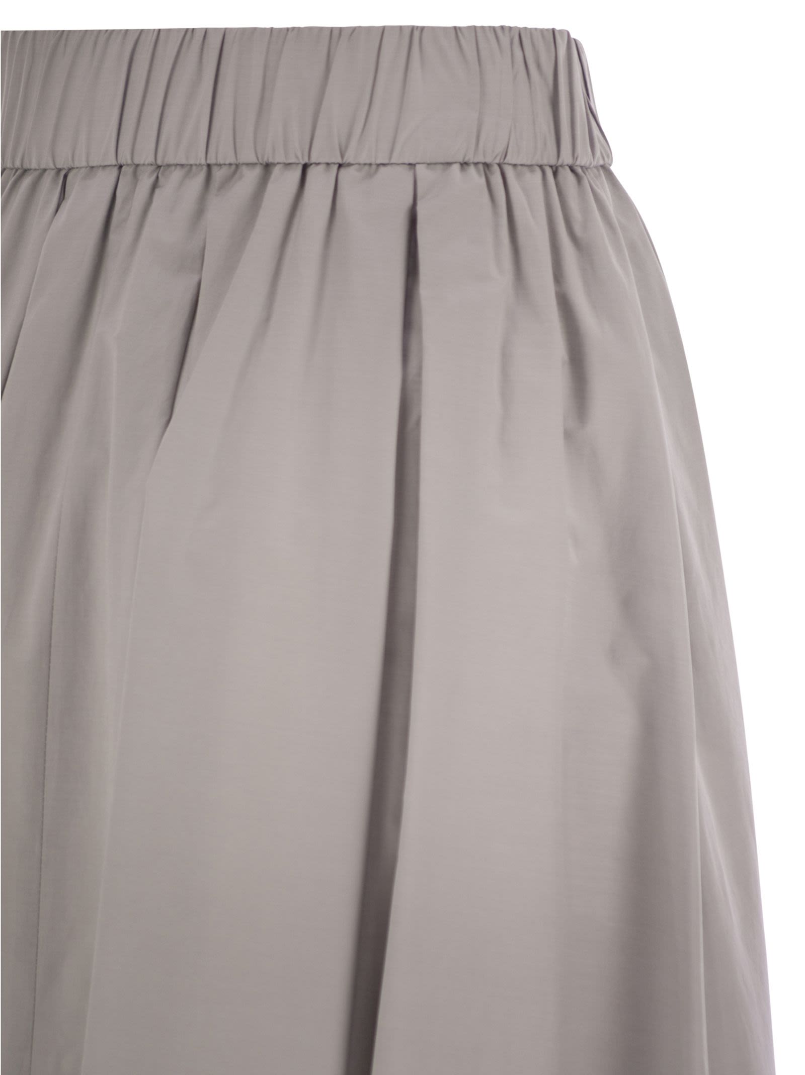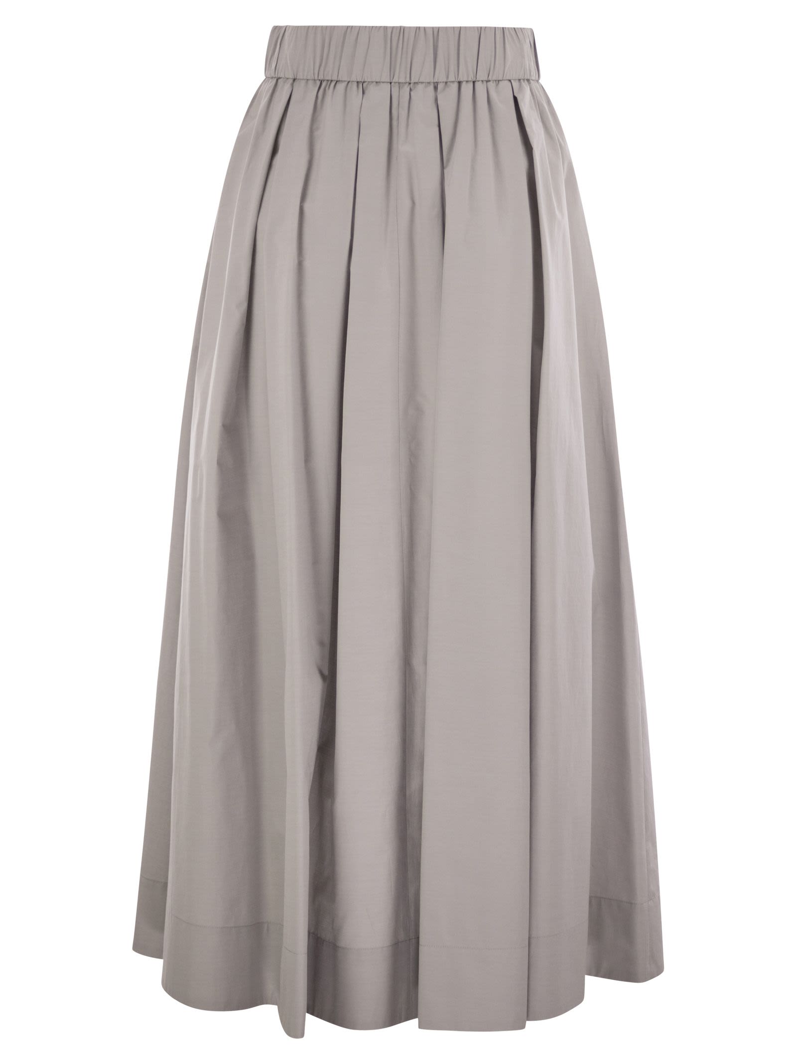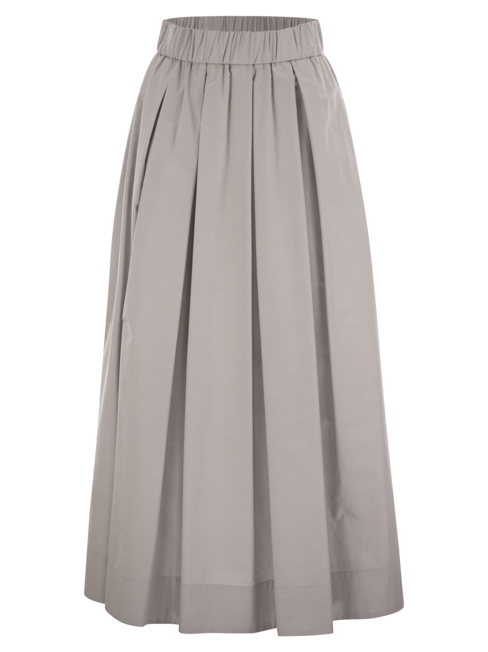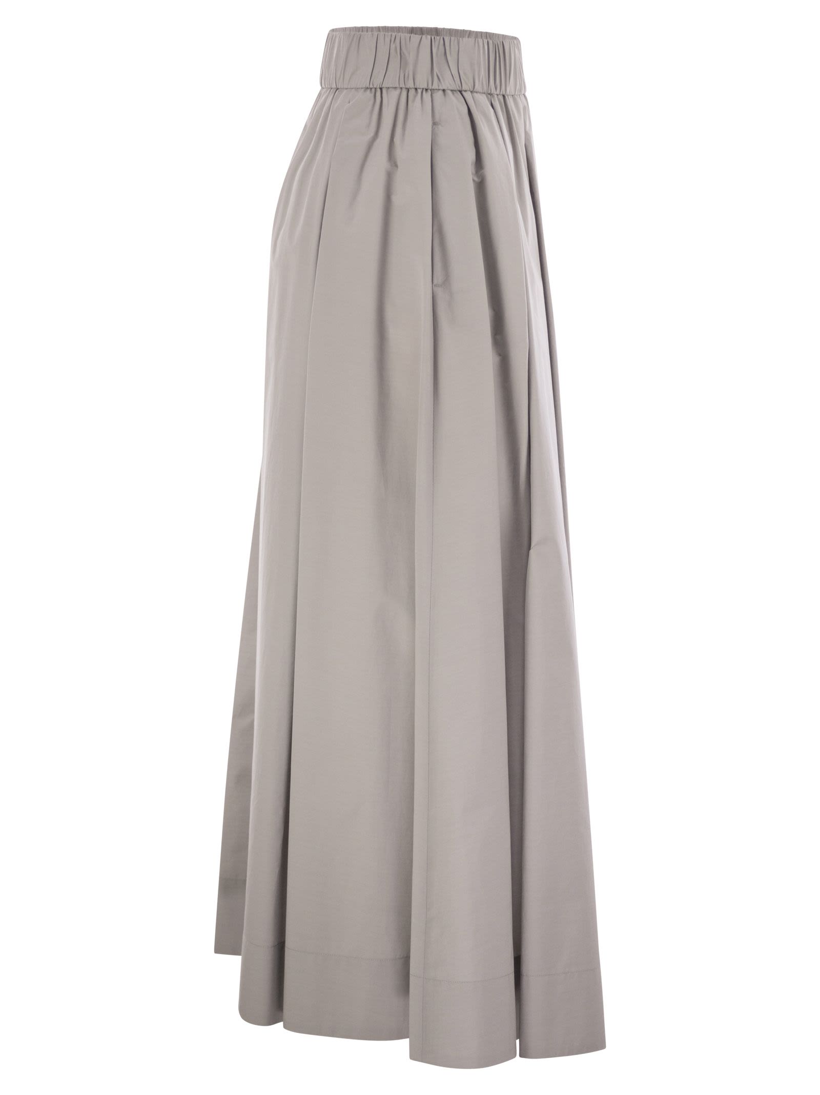 Deze lange rok in lichtgewicht technisch katoenen canvas wordt gekenmerkt door een brede lijn en een verzamelde taille voor ongeëvenaard comfort. De lengte en praktische elastische tailleband zorgen voor een comfortabele en veelzijdige pasvorm, terwijl de stof een lichte en duurzame aanraking geeft. Deze rok met een moderne en functionele stijl combineert perfect elegantie en bruikbaarheid in één kledingstuk. - Lange rok met elastische taille - brede lijn met verzamelingen en plooien bij de tailleontwerper -ID: P0515601919 075