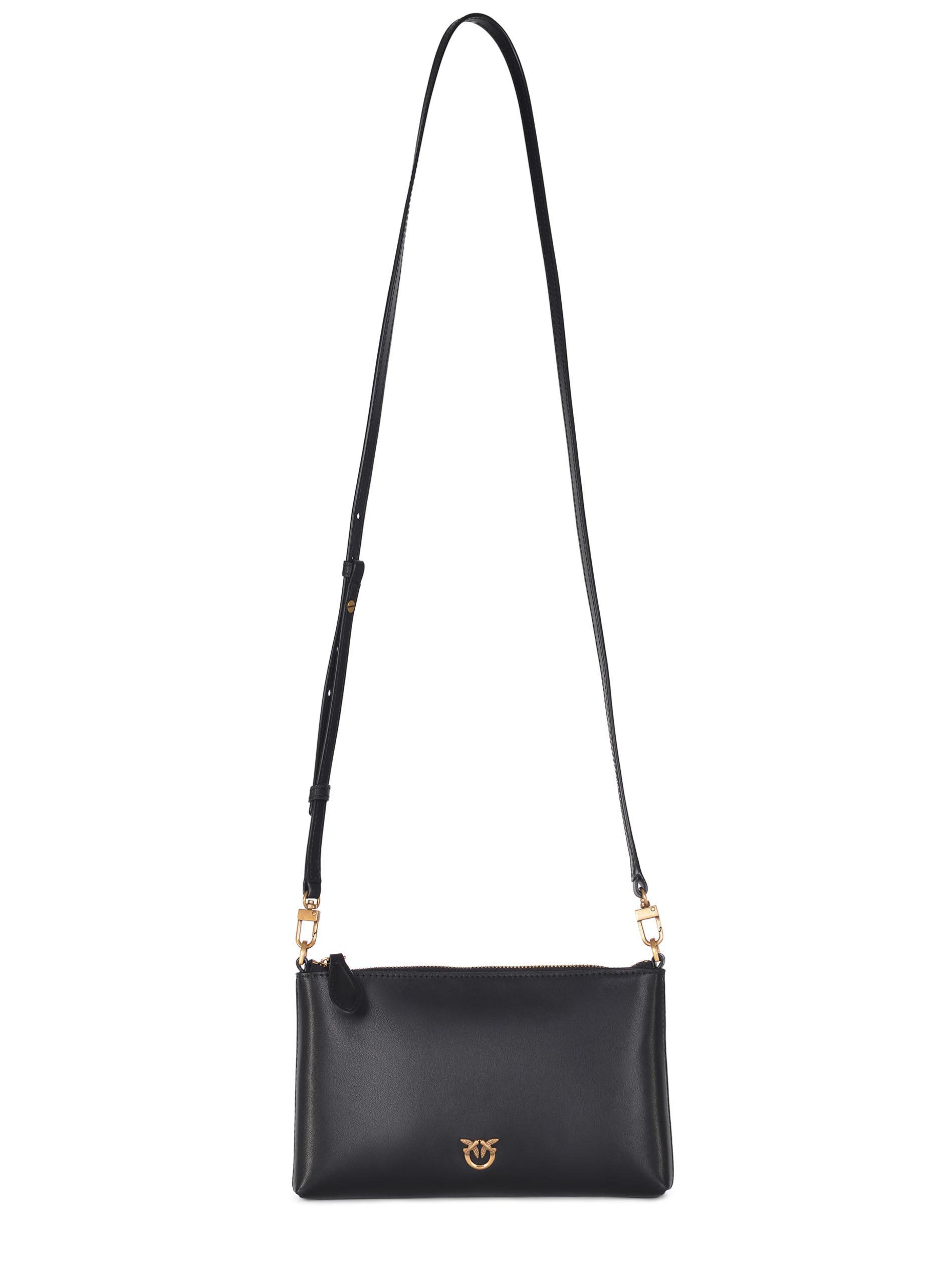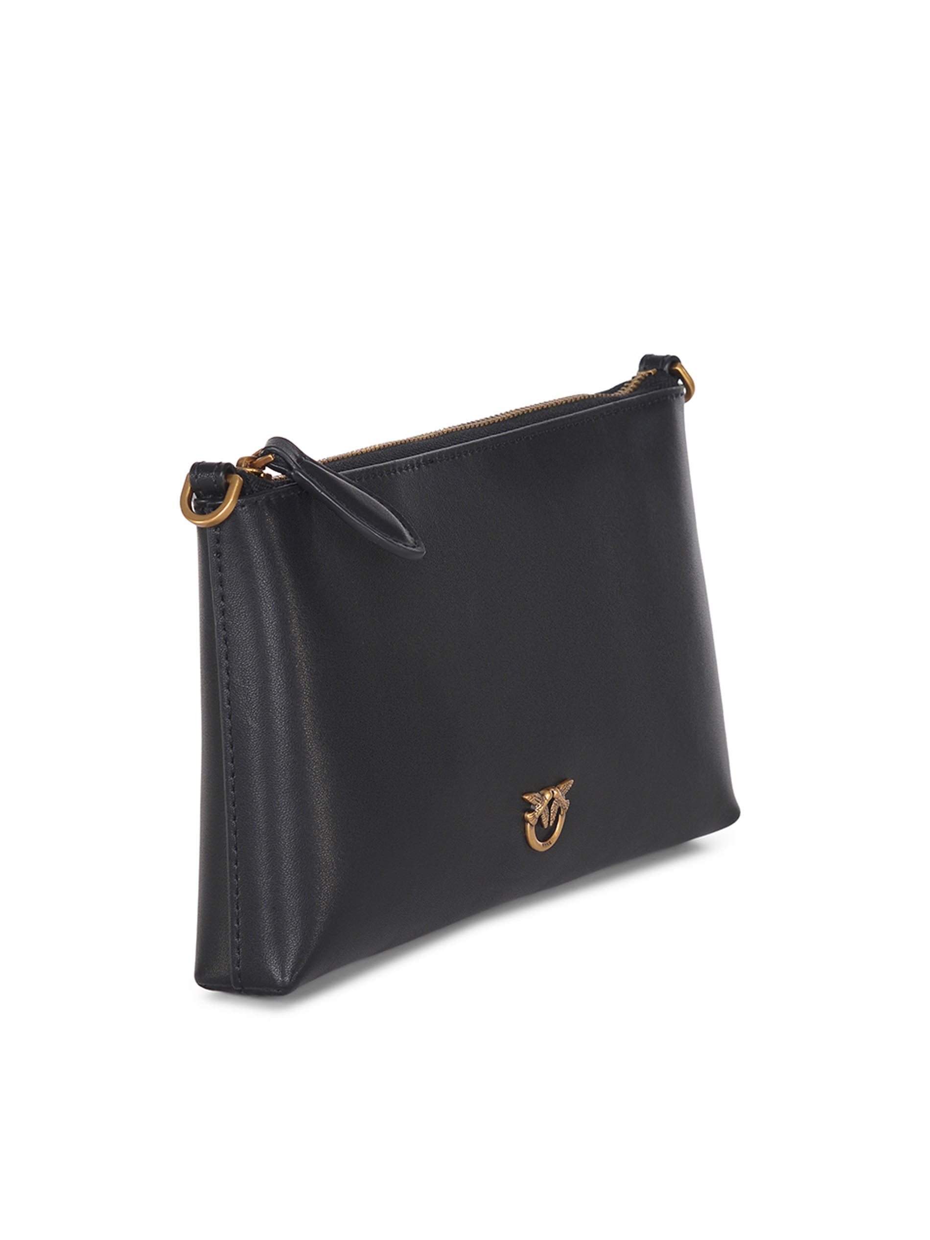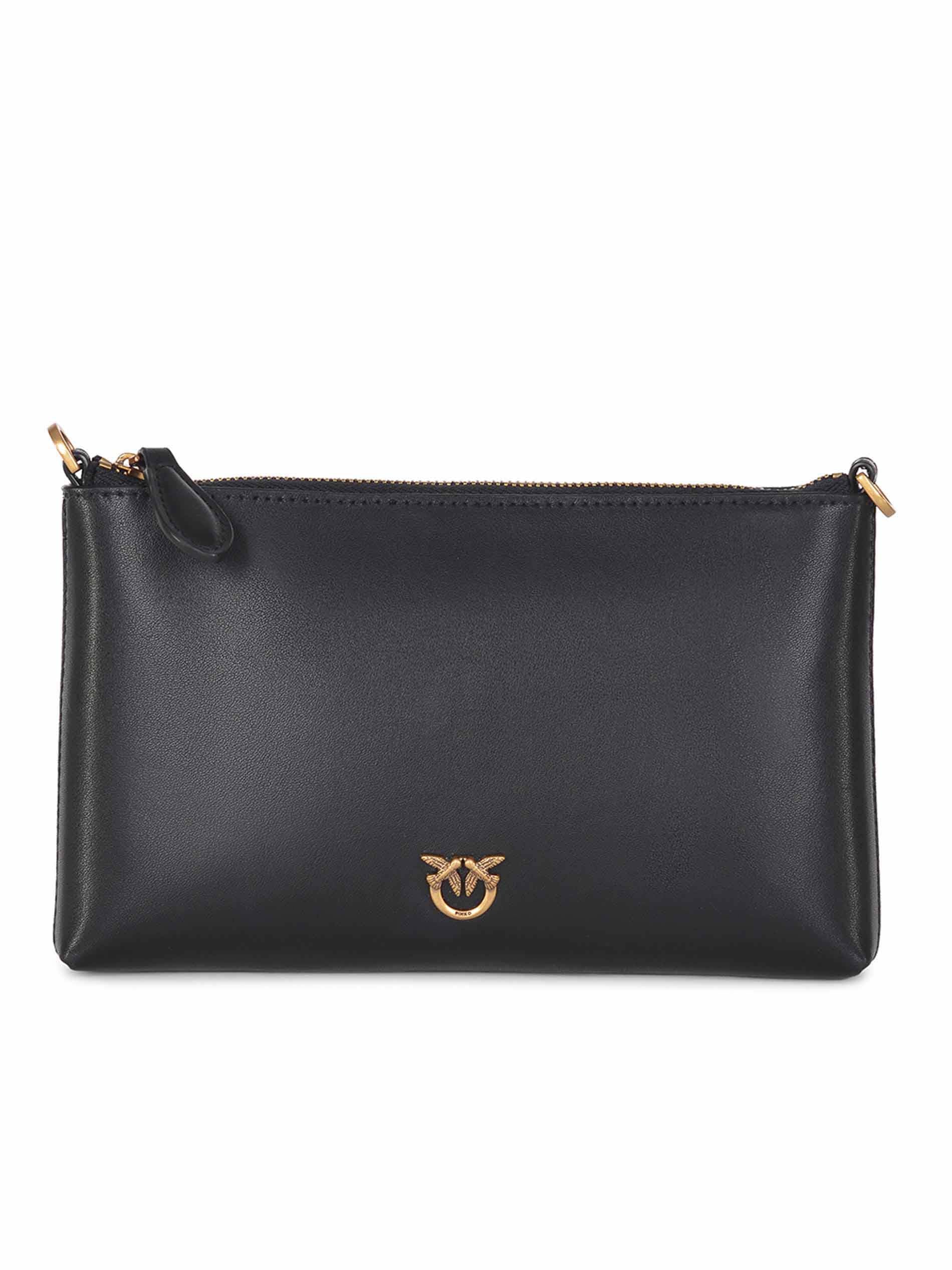 Pinko 'Flat horizontale' tas gemaakt van zwart leer. Ritssluiting. Love Birds Logo in Gold Metal. Interne zak met ritssluiting. Kleine interne kaarthouderzak. Verwijderbare en verstelbare kettingriem. Geborduurd Love Birds -logo op de achterkant. Lengte 20 cm hoogte 12 cm breed 2 cm 100% leer.