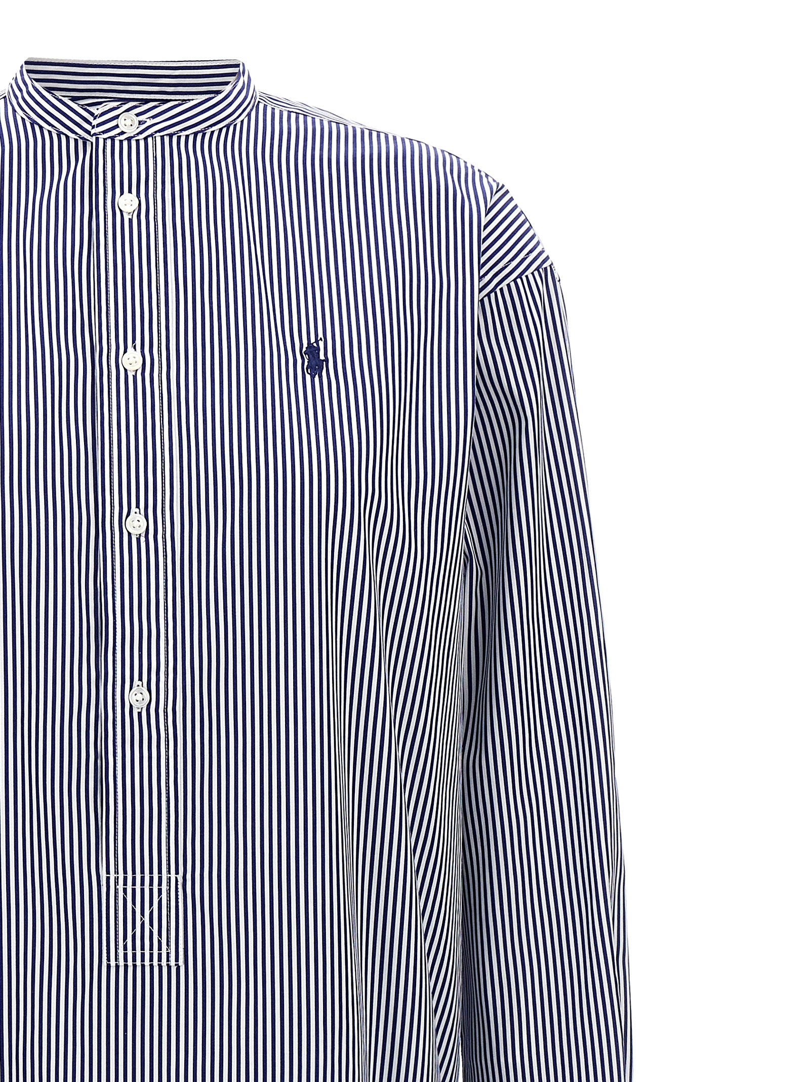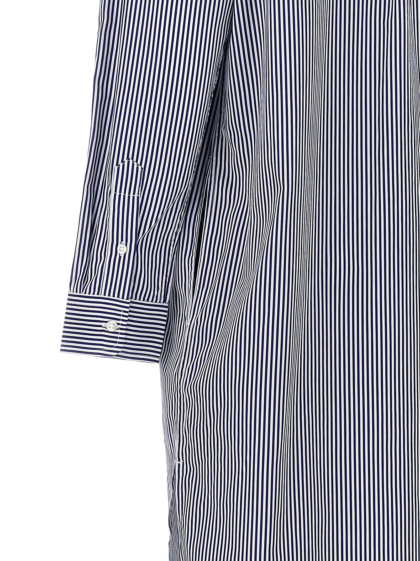 Chemisier -jurk in katoenen popeline met gestreepte patroon, mandarijnkraag, halve knopsluiting, logo -borduurwerk.