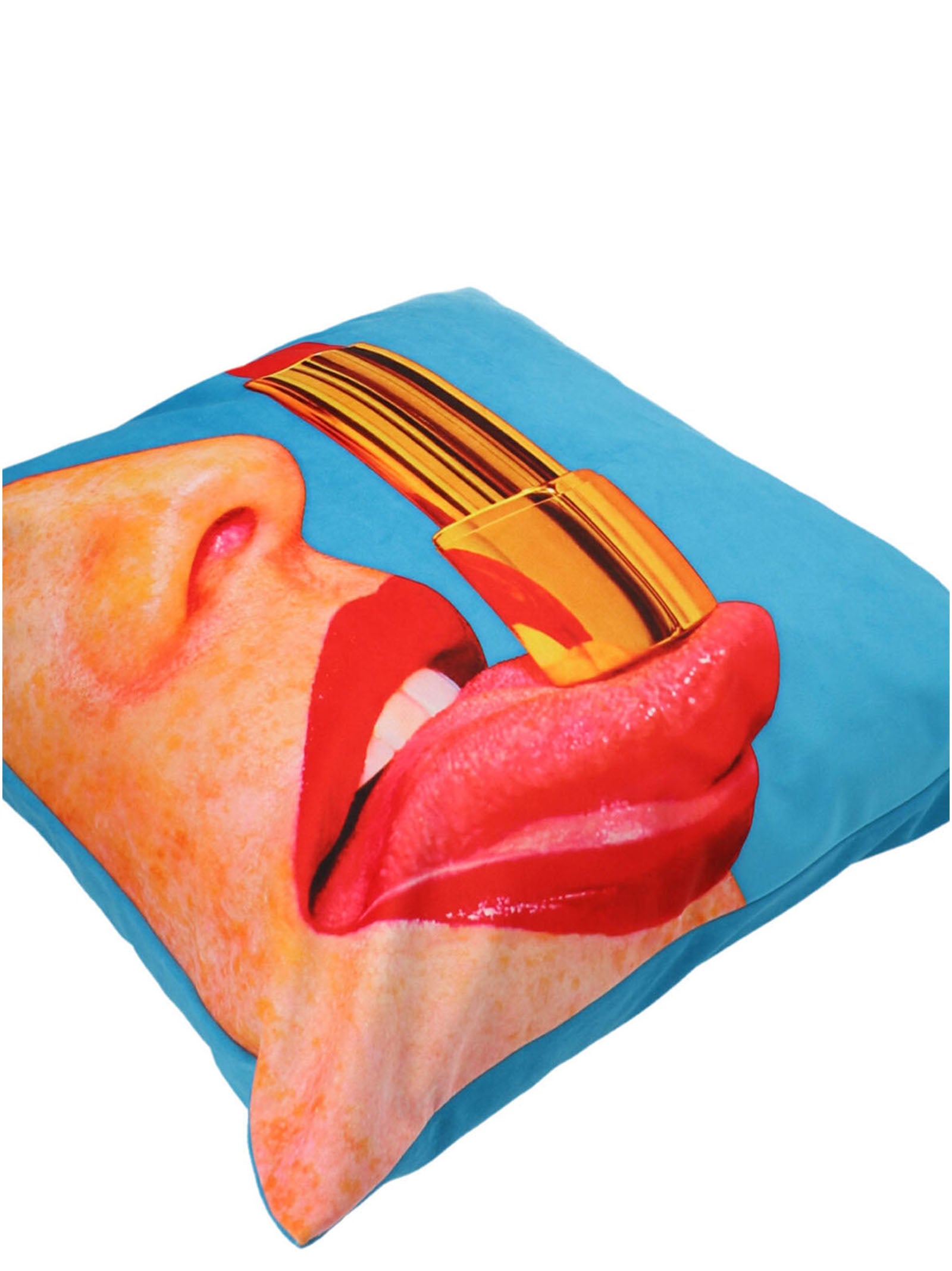 'Tong' kussen in samenwerking met wc -papier, met een verwijderbare dekking en gans down vulling.