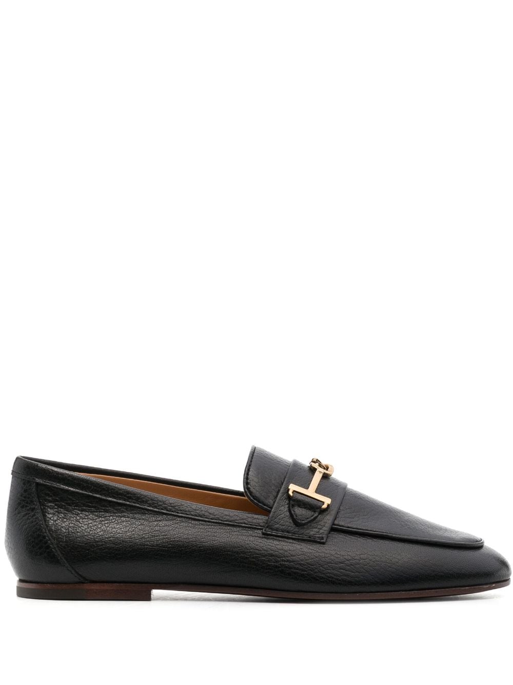 logo-plaque lederen loafers van Tod 'S Met zwart, kuitleer, goudkleurige logo-plaquette, amandel teen, lederen binnenzool en platte zool.