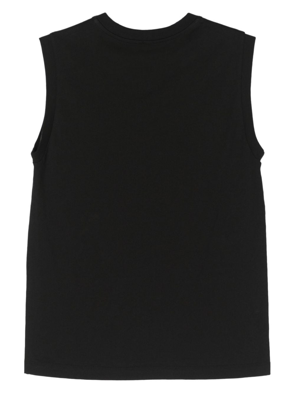 Zwarte organische katoenen lichtgewicht trui geribbelde trim bemanning nek mouwloze rechte zoom Dit item is gemaakt van ten minste 50% organische materialen. Lees meer over wat een product bewust maakt op onze bewuste criteria -pagina