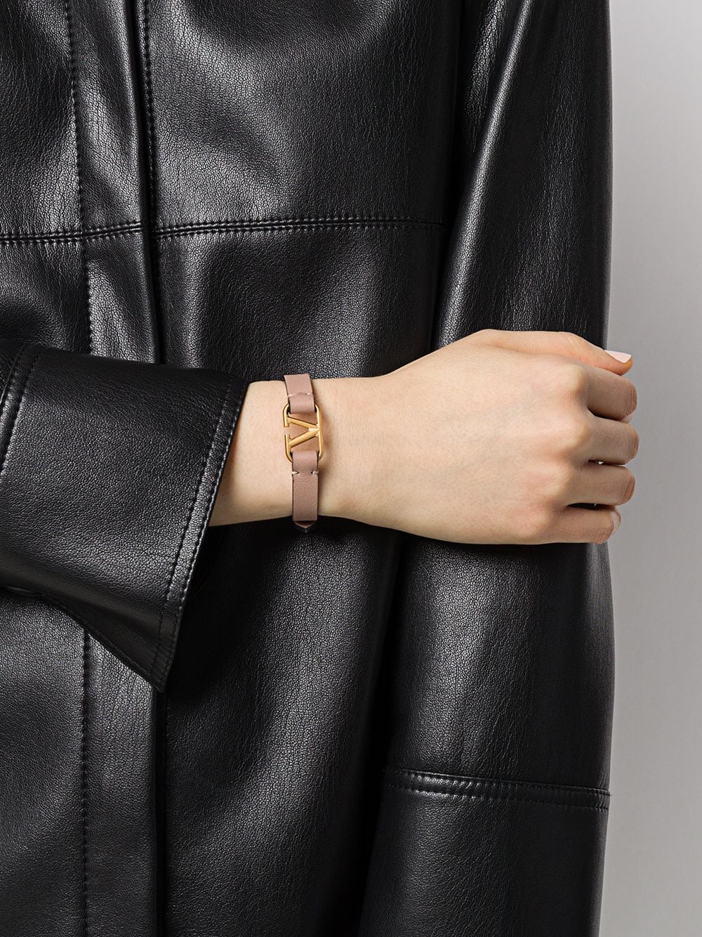 Poederroze kalf lederen vlogo Signature lederen armband van Valentino Garavani met vlogo-handtekening, goudkleurige hardware, gespiepen en voorgeboorde gaten.