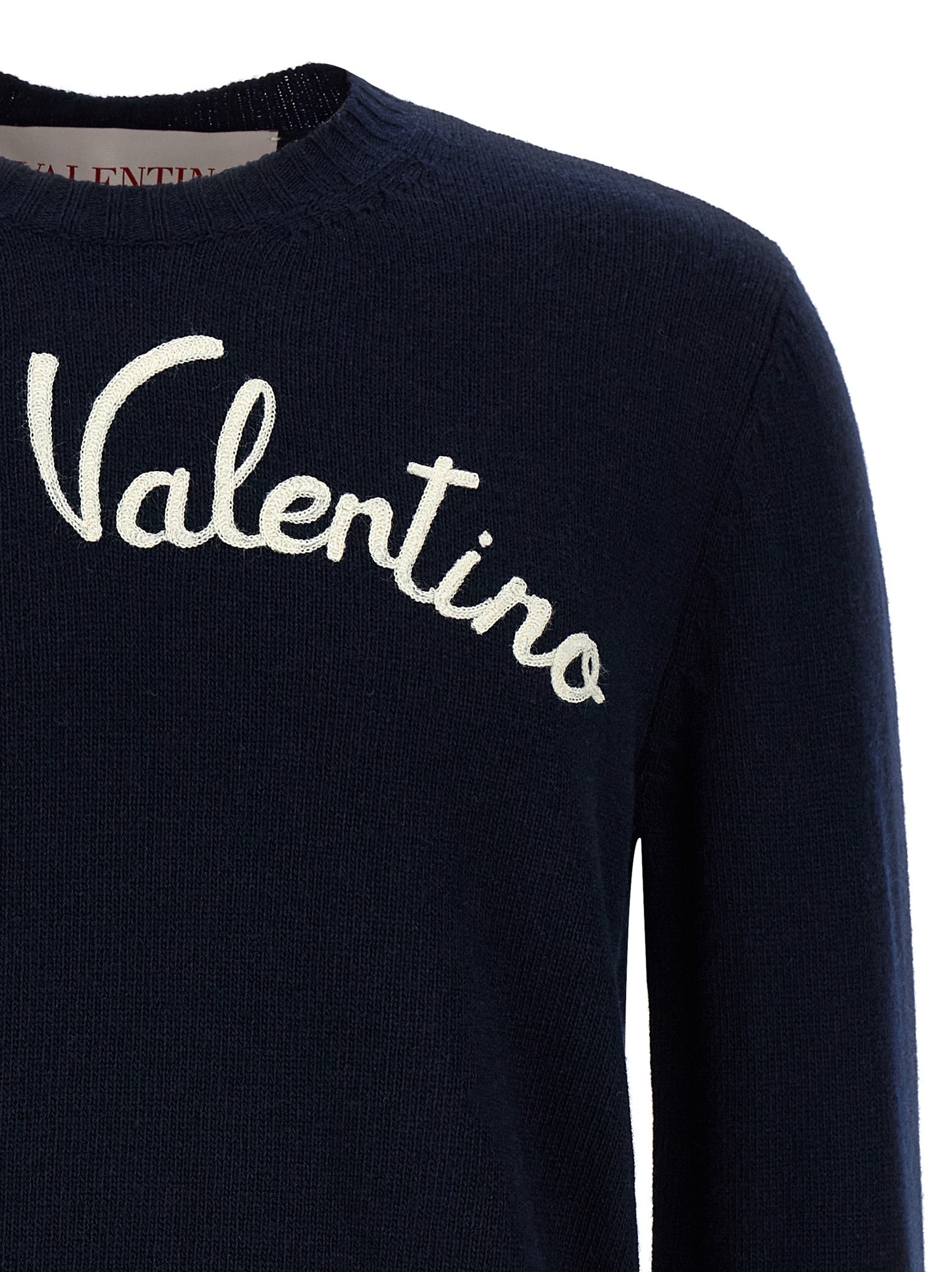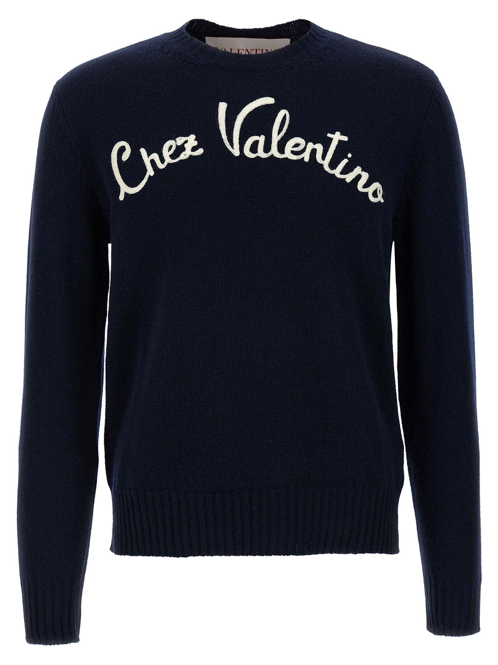 Virgin Wool -trui met contrast 'Chez Valentino' borduurwerk op de voorkant, crewhals, lange mechepte mouwen.