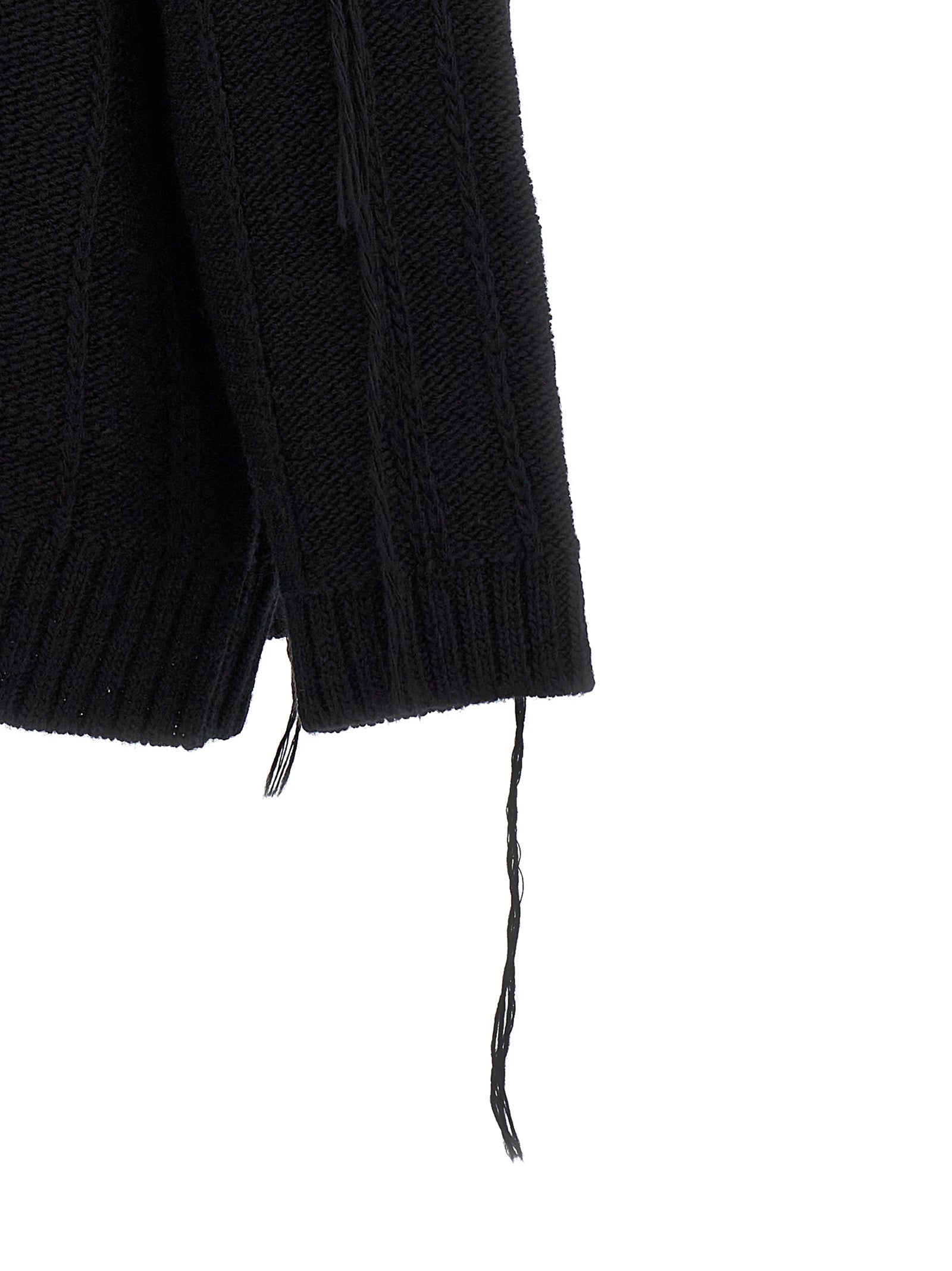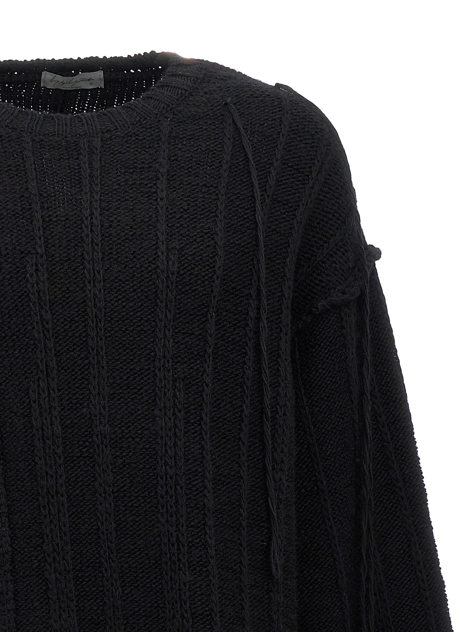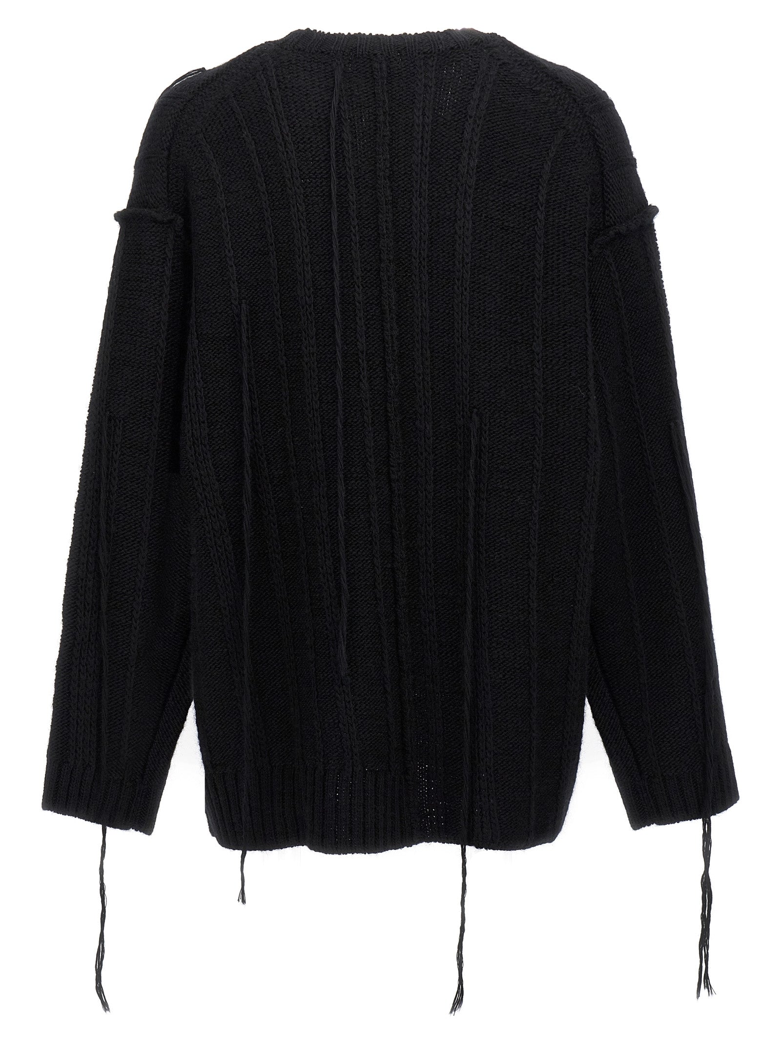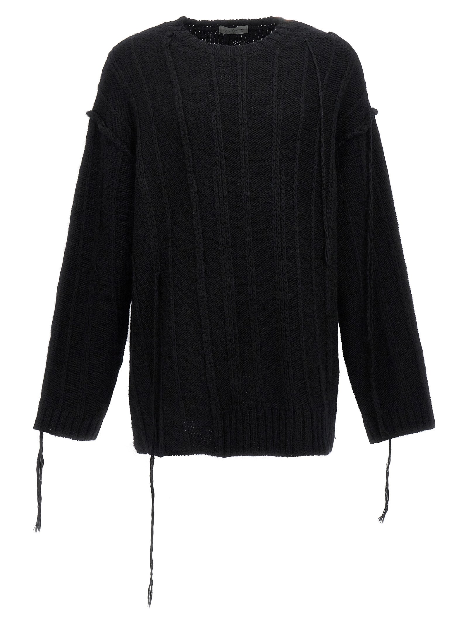 'String Switching' wollen trui met onafgemaakte draden, crewhals, lange mouwen.