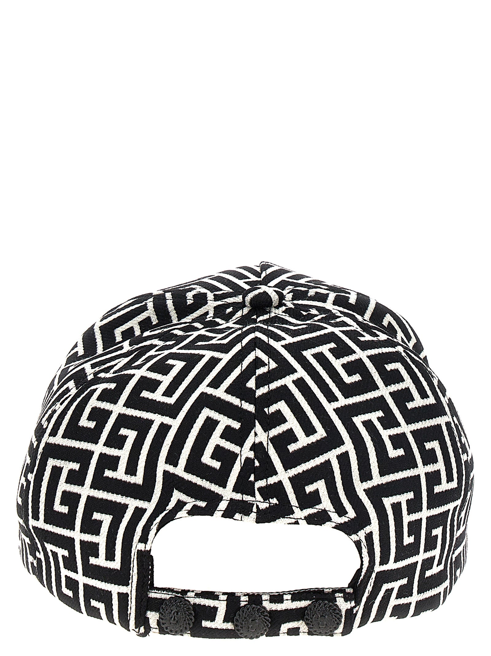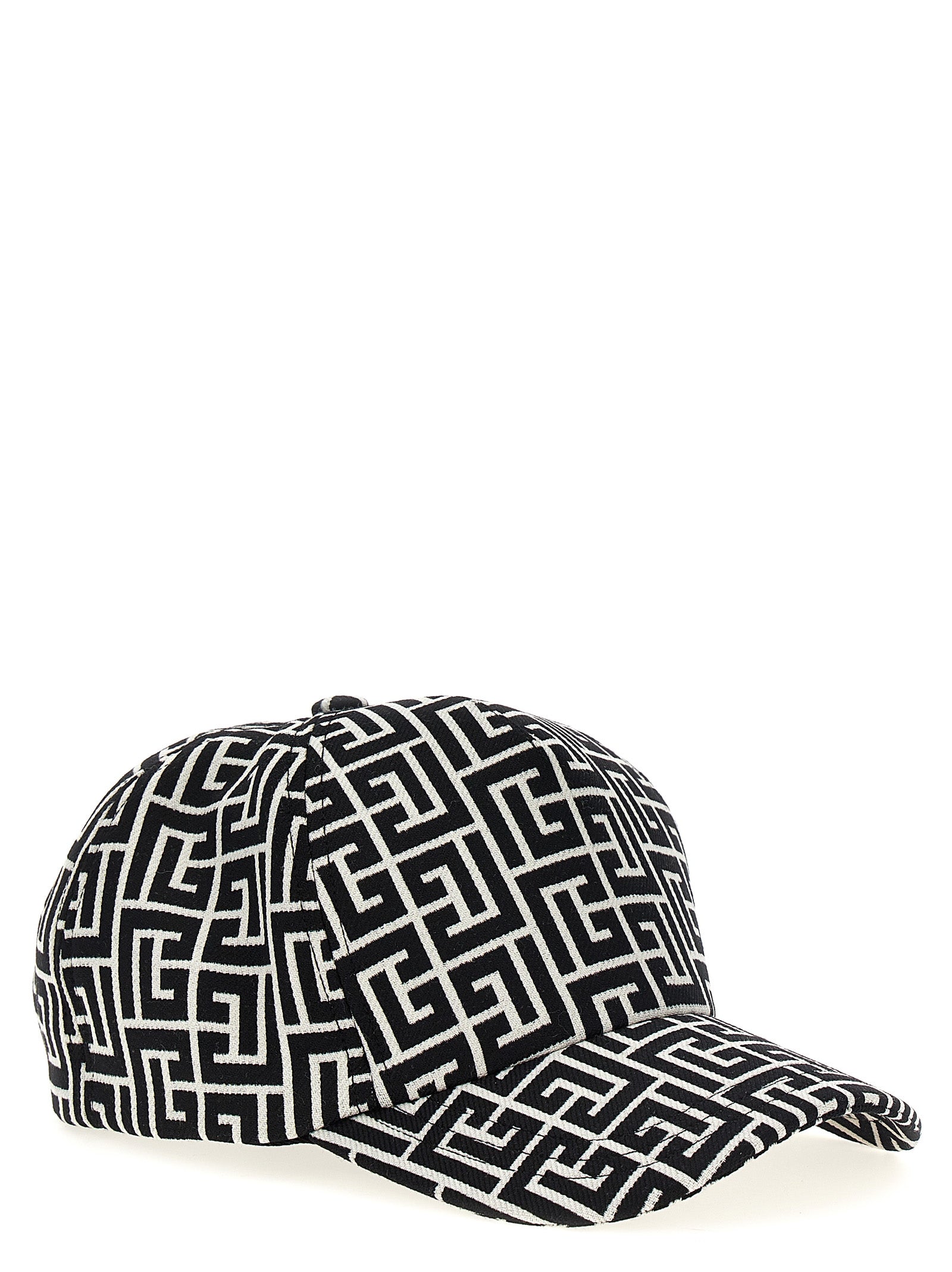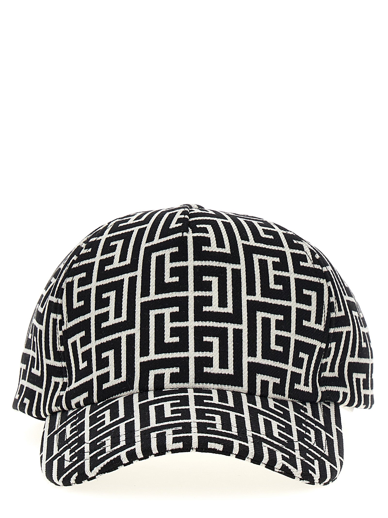 Ullhette med all-over 'monogram' mønster, justerbar stropp med logoknapper.