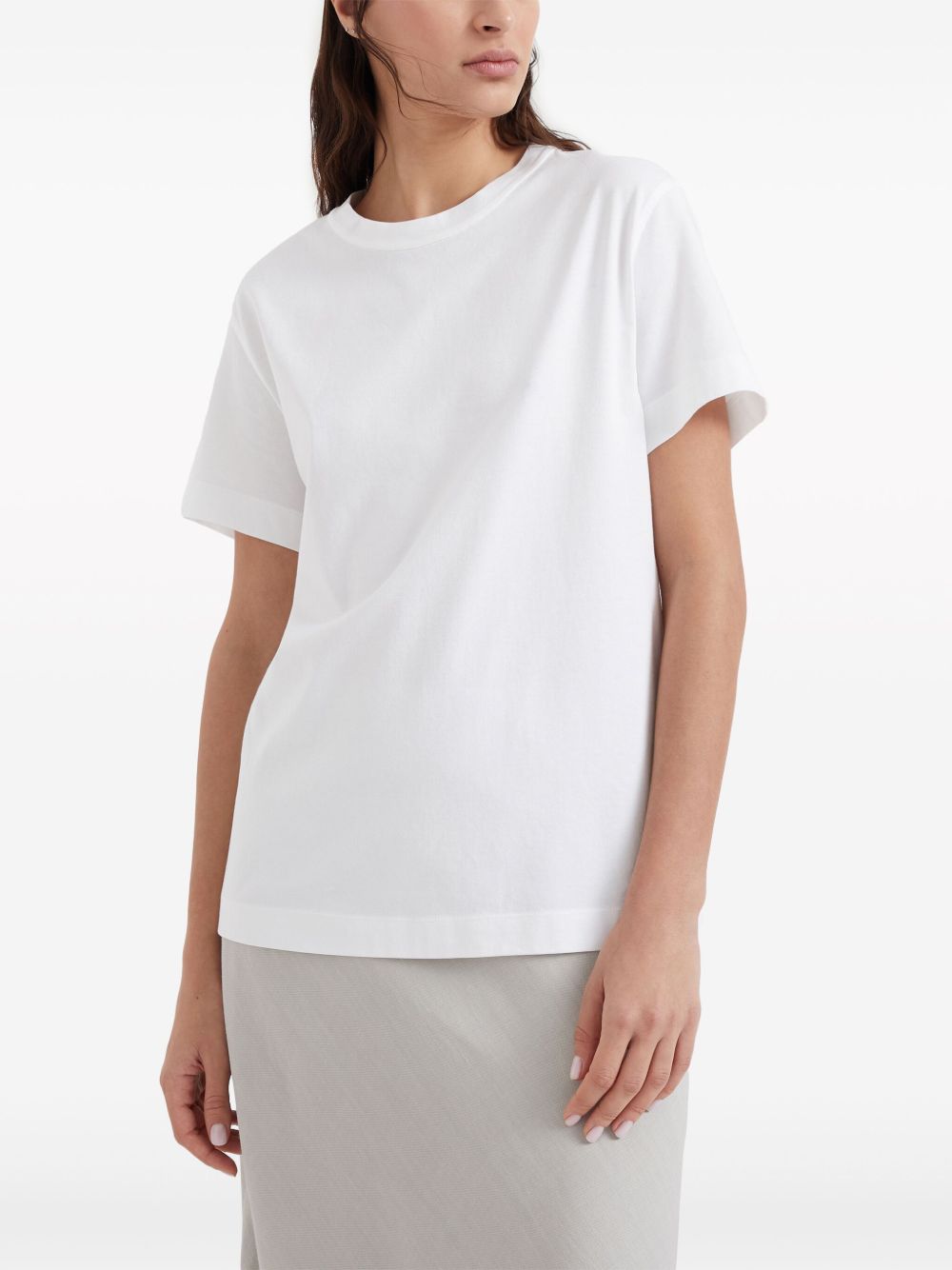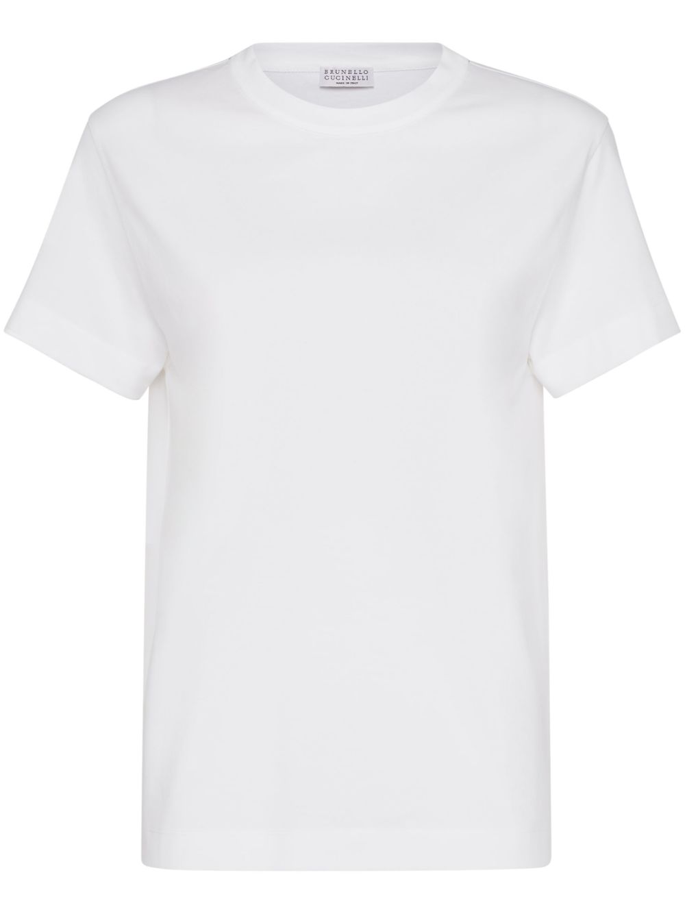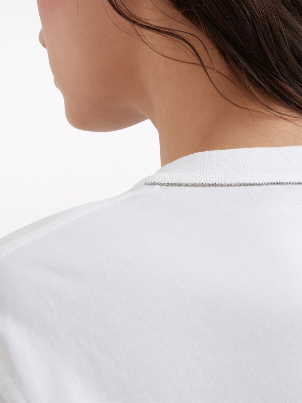 white cotton signature Monili chain detail round neck short sleeves straight hem