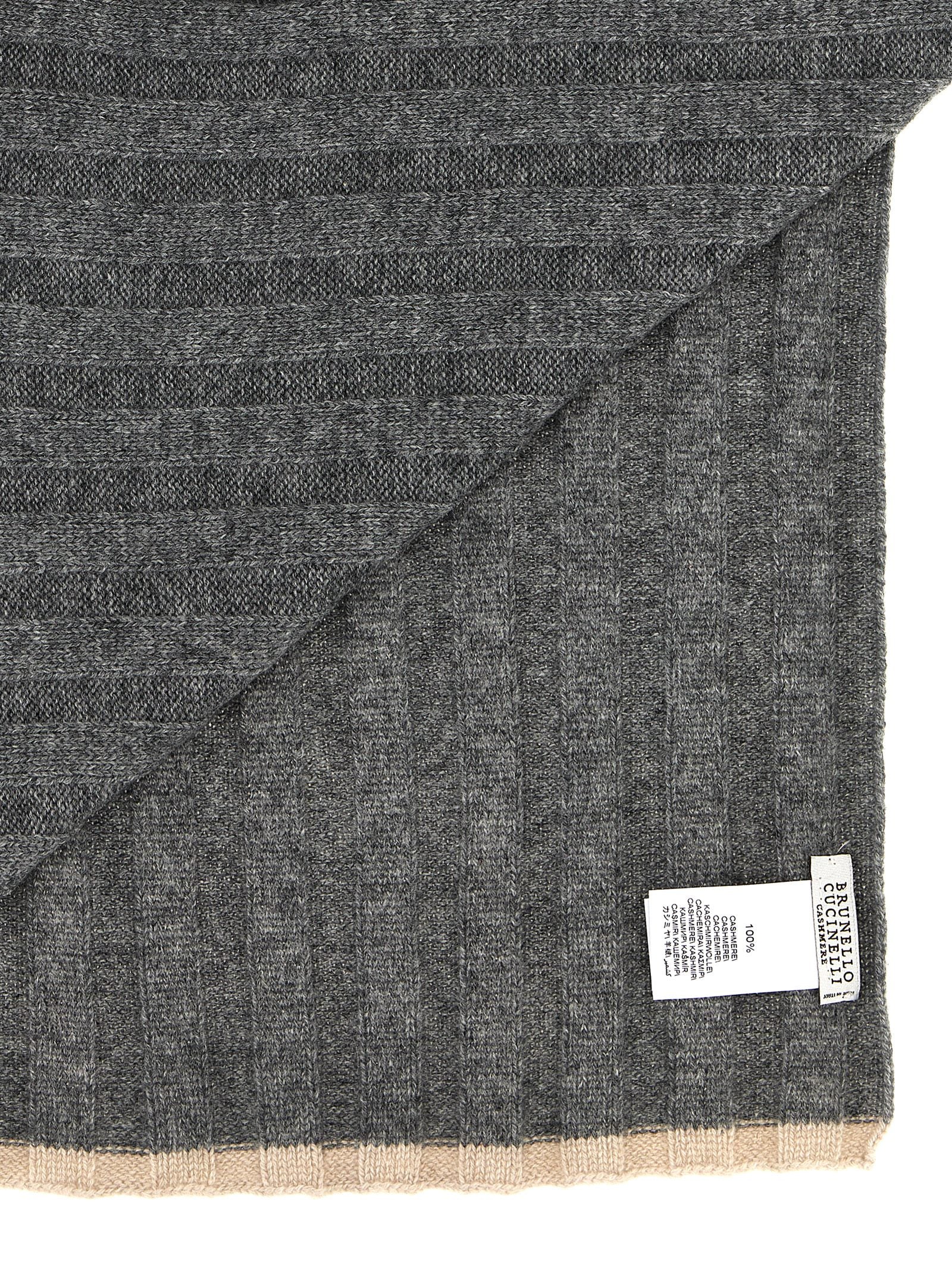 Ribbed Cashmere -skjerf med kontrasterende kanter.