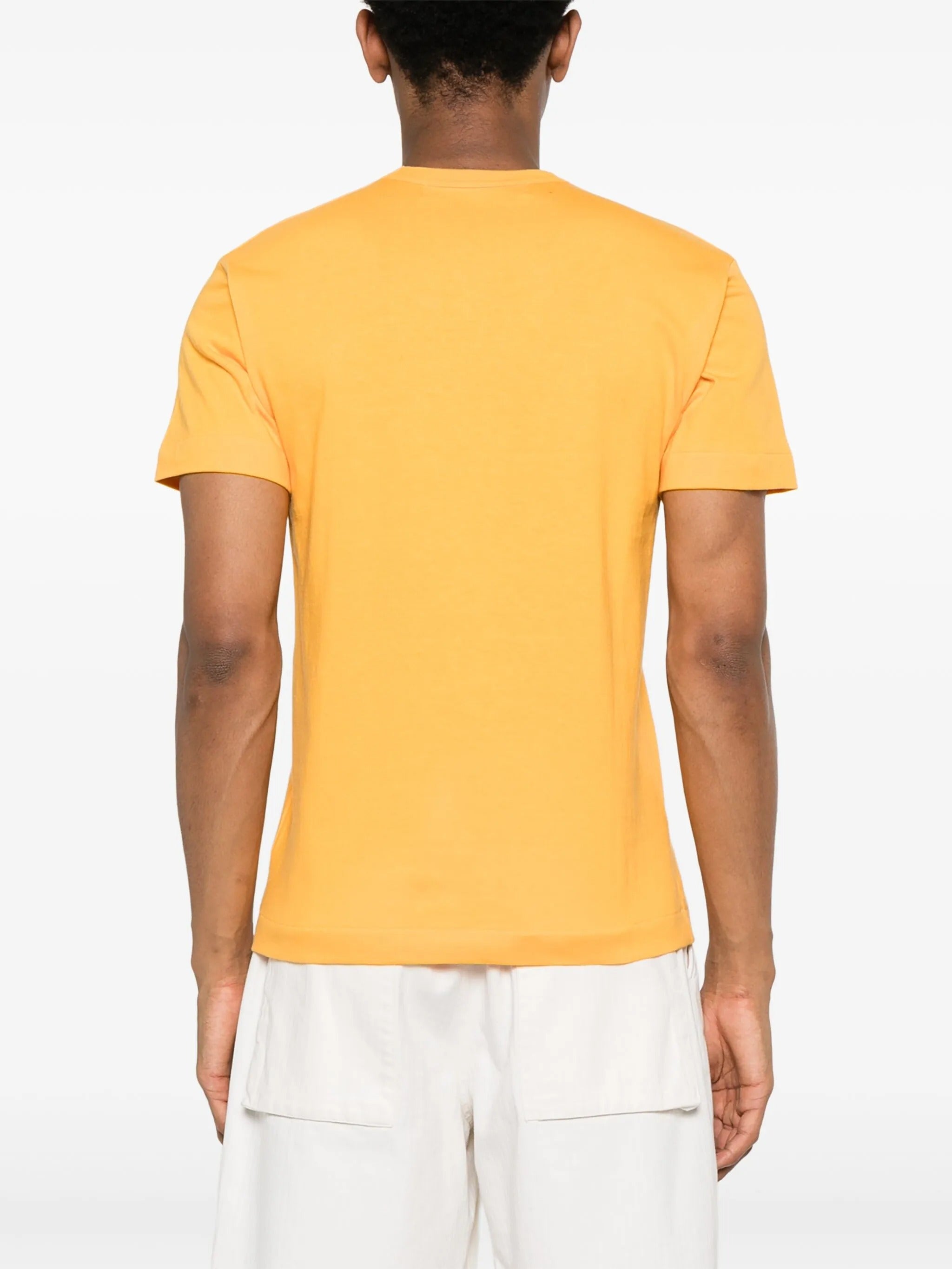 Gul bomullslogo-lapp kortermet t-skjorte fra Comme des Garçons spiller med logo-lapp foran, runde nakke, korte ermer og rett hem.