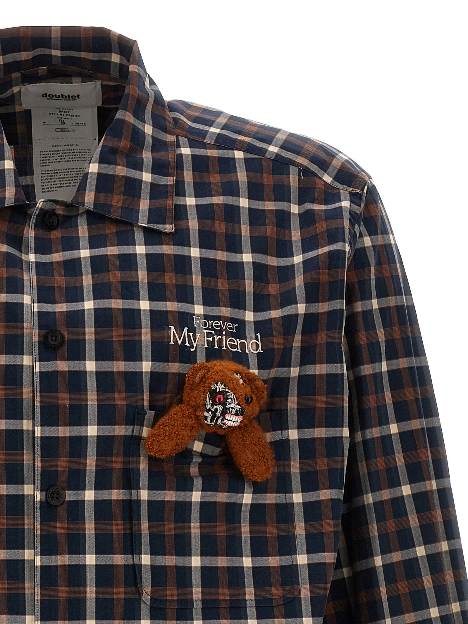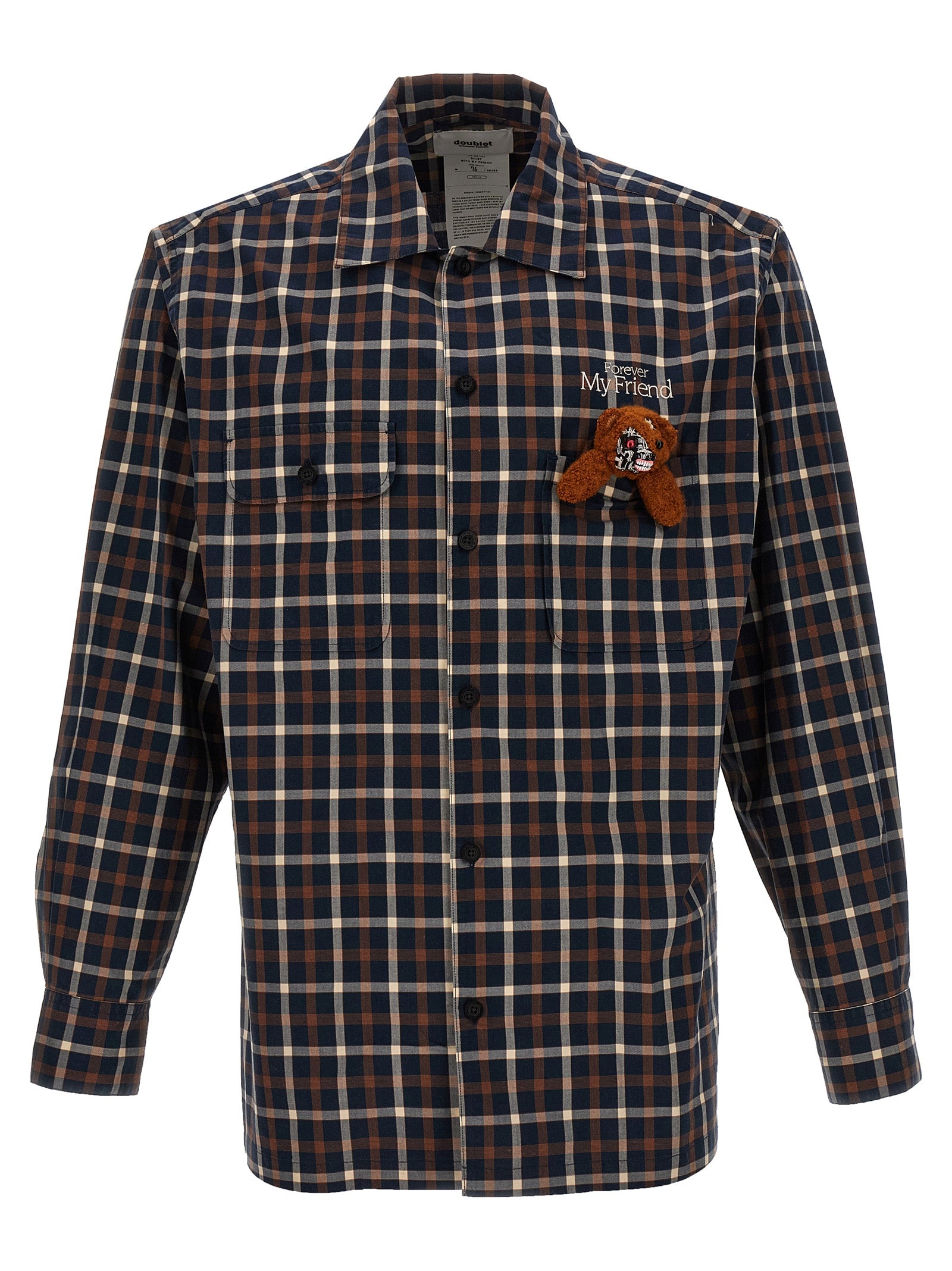 'Med min venn' bomullsskjorte med sjekktrykk, frontlomme med dukketealjdetaljer, broderi, lukking av knapper, lange mansjett ermer.
