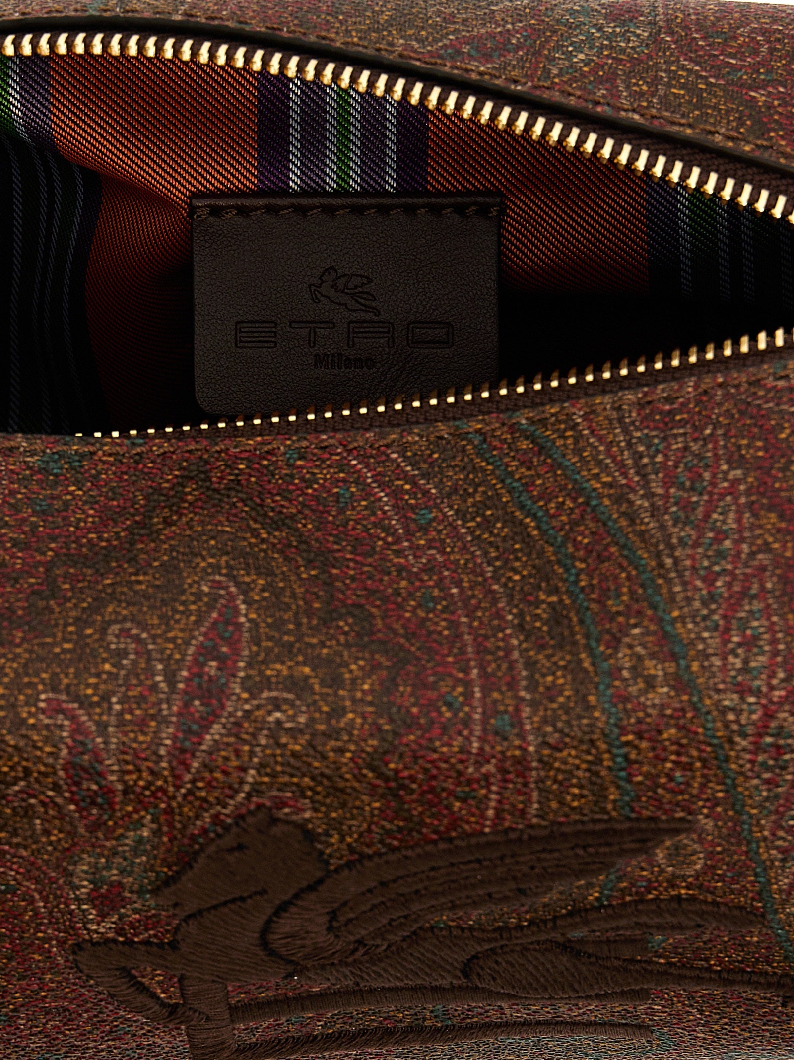 Paisley-stoff og sminke av lær, broderi foran, glidelås.