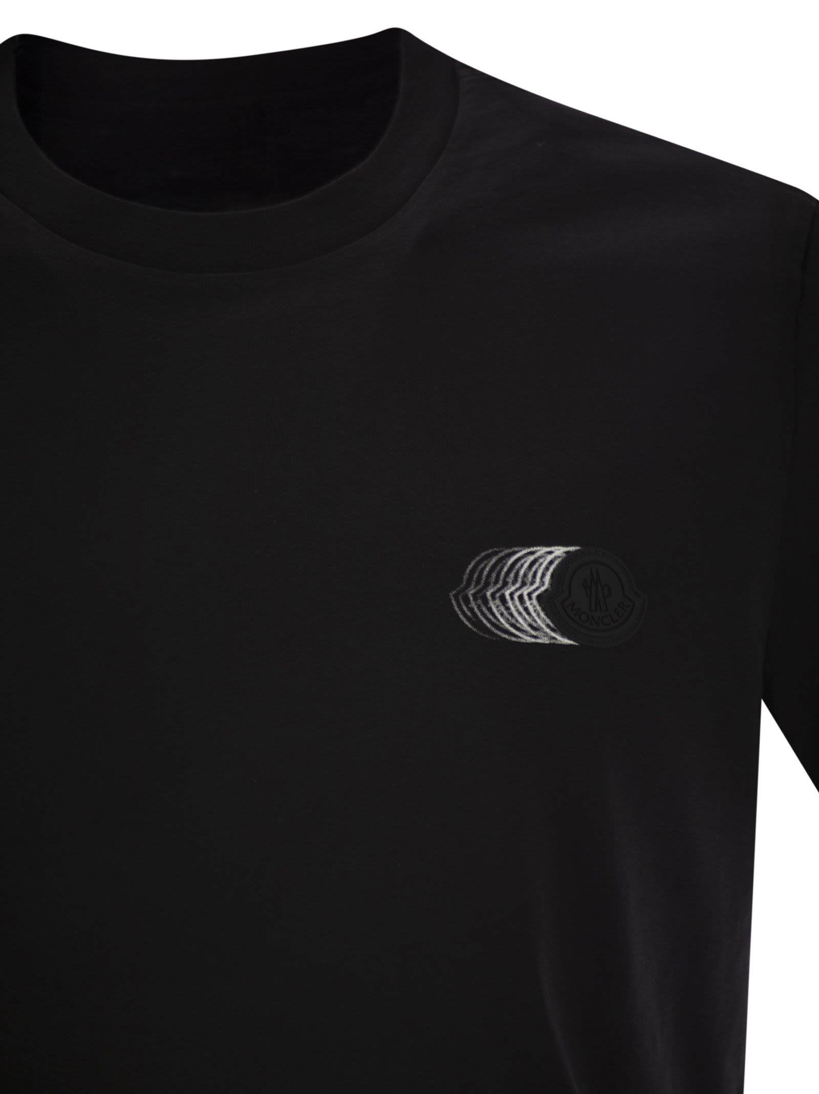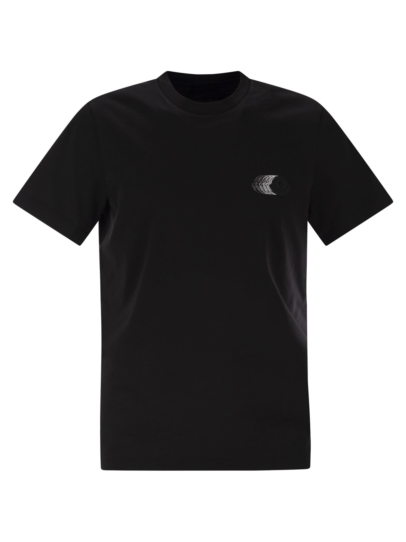 Moncler T -skjorte med falmet logo -motiv i bomull