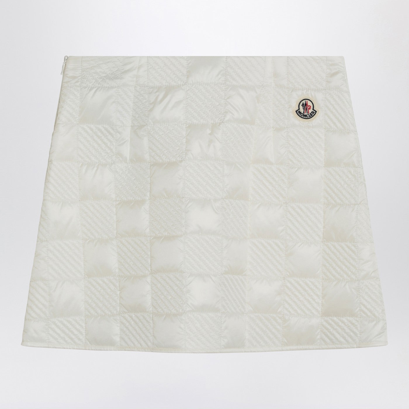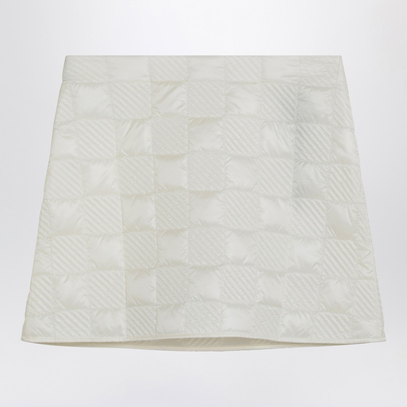 White quilted nylon mini skirt from Moncler featuring a padded design, side zip fastening and back logo patch.