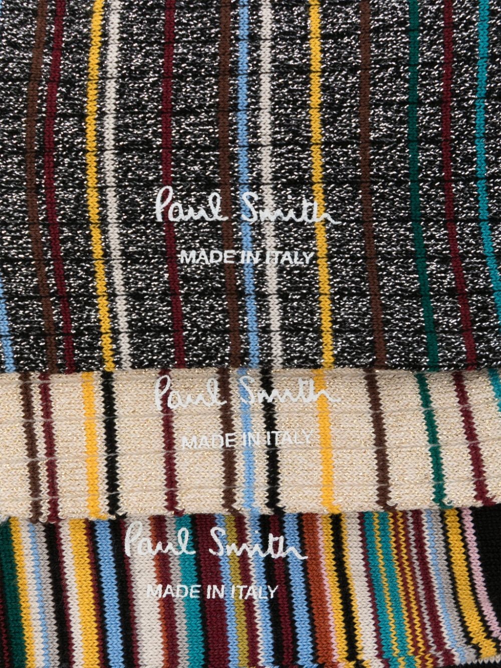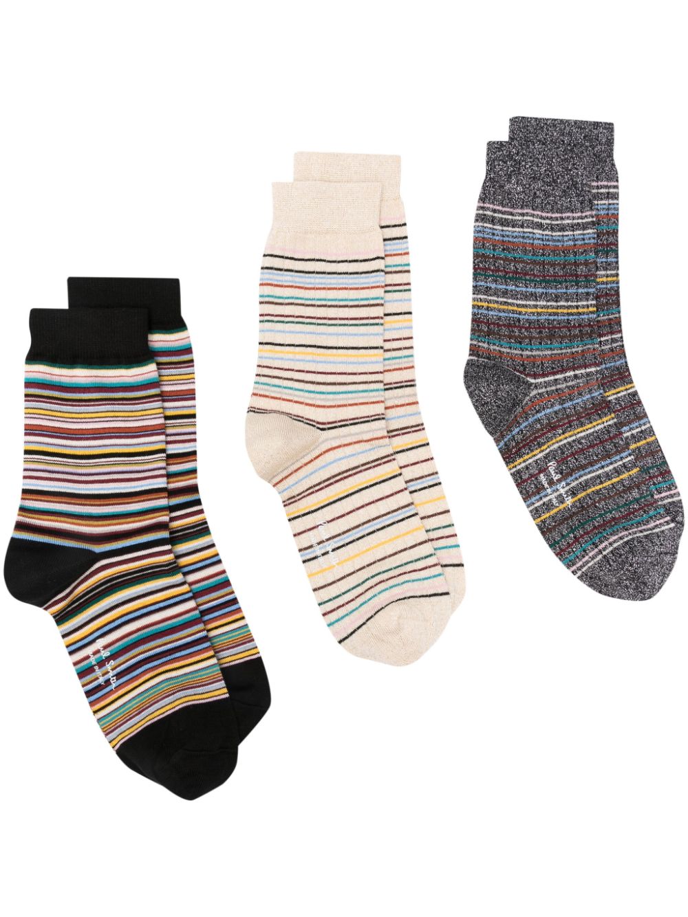 black/multicolour ribbed knit metallic threading pack of three horizontal stripe pattern logo print to the rear elasticated ankles Be sure before opening, as socks and hosiery can only be returned in their original, unopened packaging.