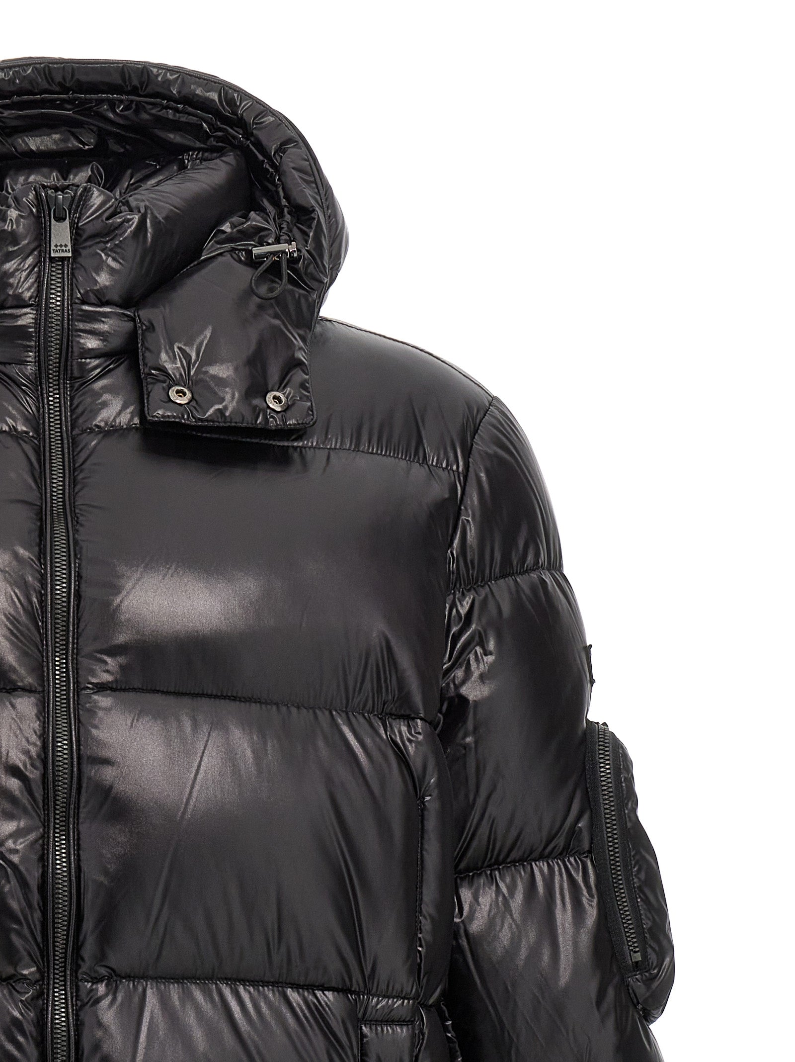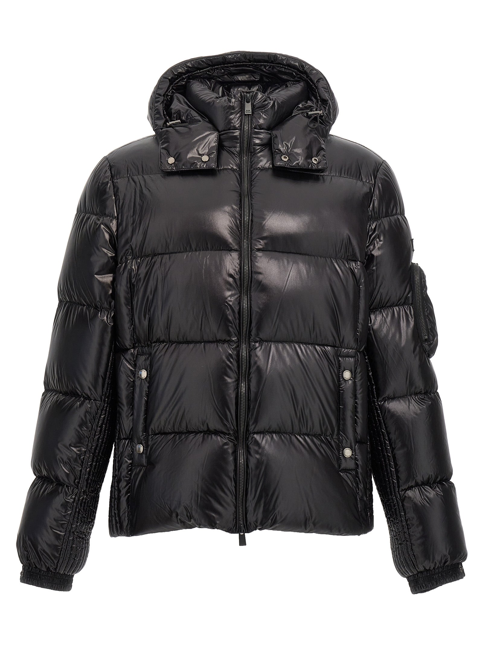 'Belbo' nylon ned jakke med nedturping, avtakbar hette, glidelås, lommer, lange ermer med elastiske og justerbare mansjetter.