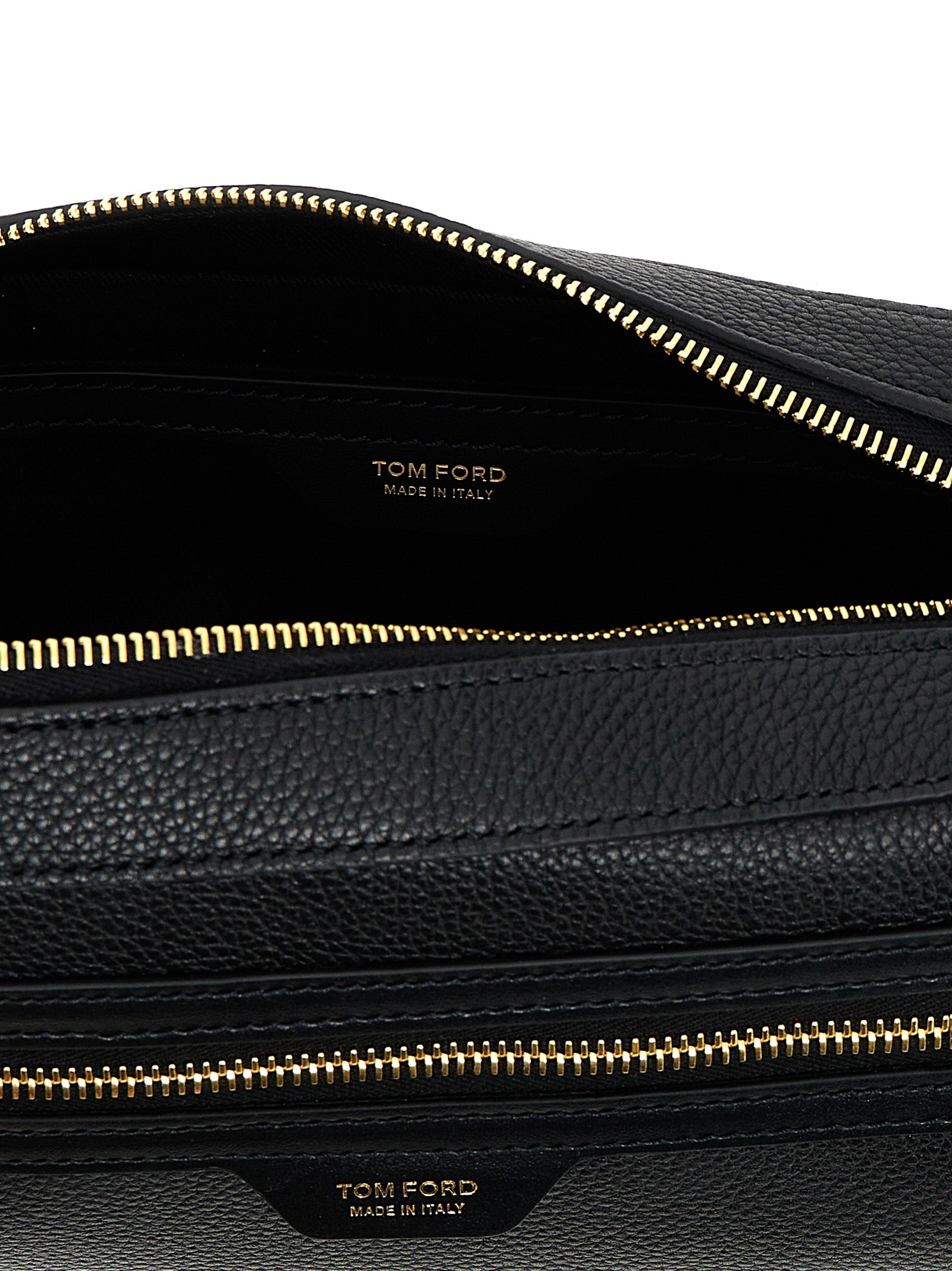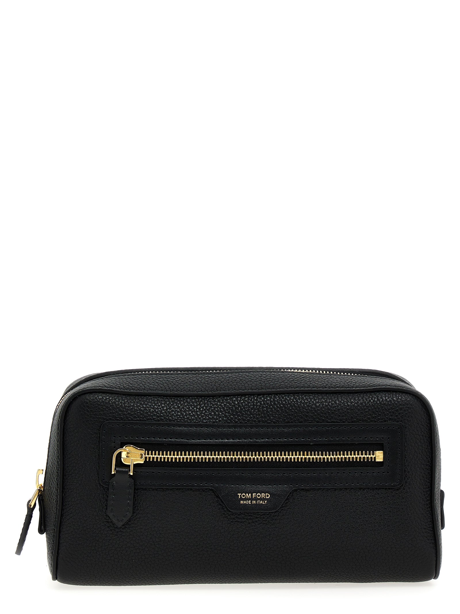 Kornete skinn skjønnhetsveske med frontlogotrykk og en glidelåsstenging.