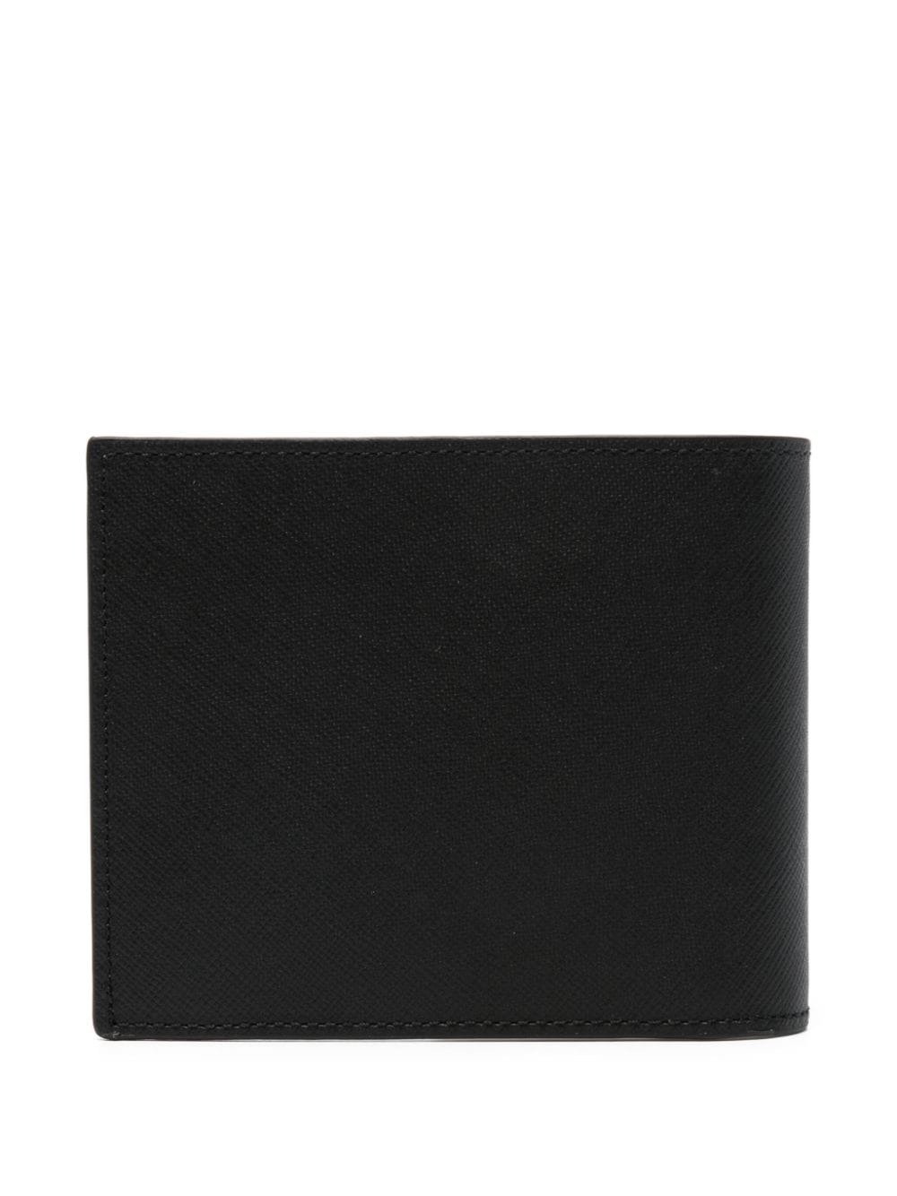 Czarne cielę skórzane teksturowane logo Wykończenie Drukuj na przedni dwupokrotny projekt wewnętrzny podpis balonowy Balon Gniazda karty wewnętrznej nuta wewnętrzna przedziały wewnętrzne znaczek logo Pełna podszewka