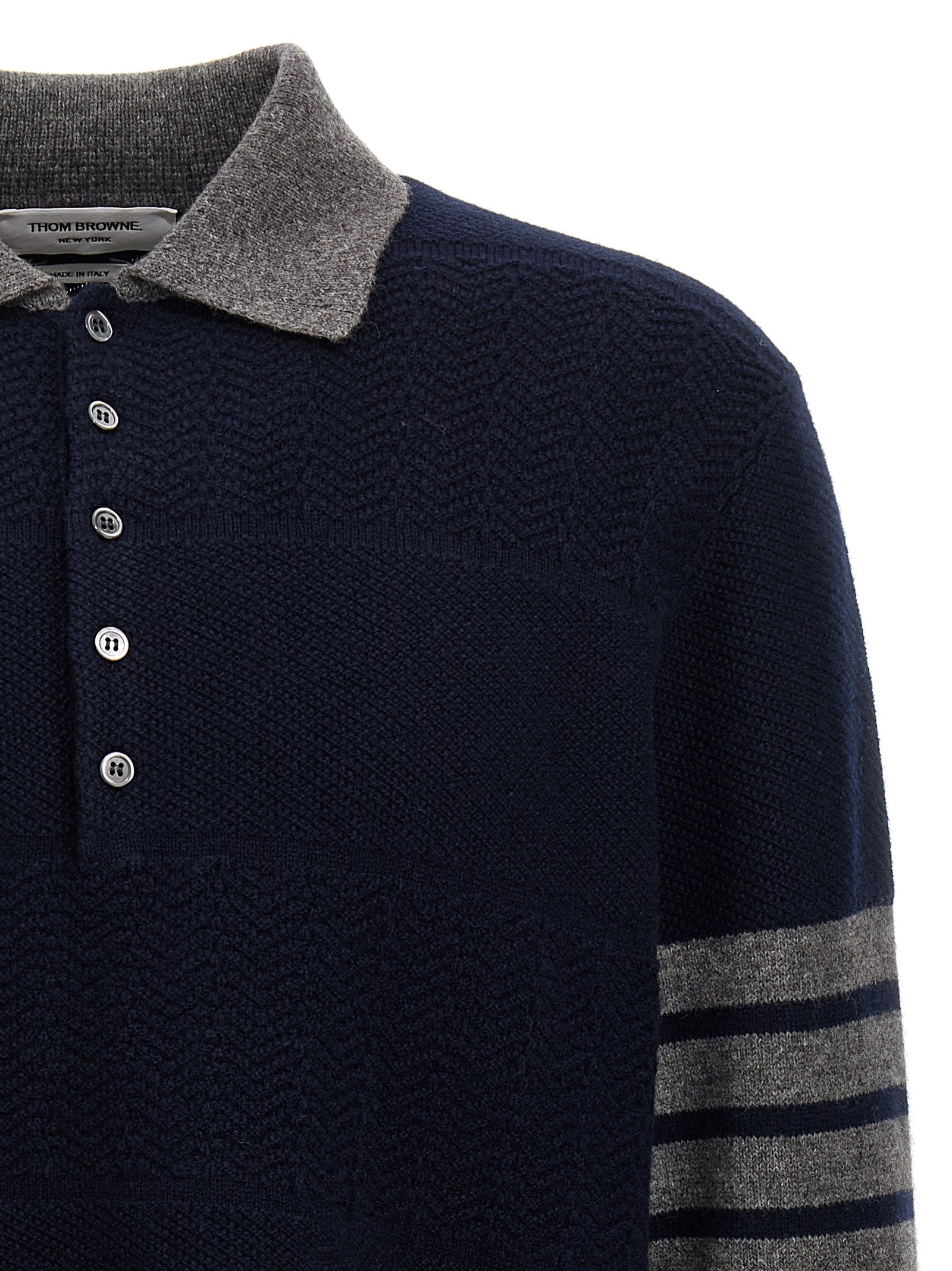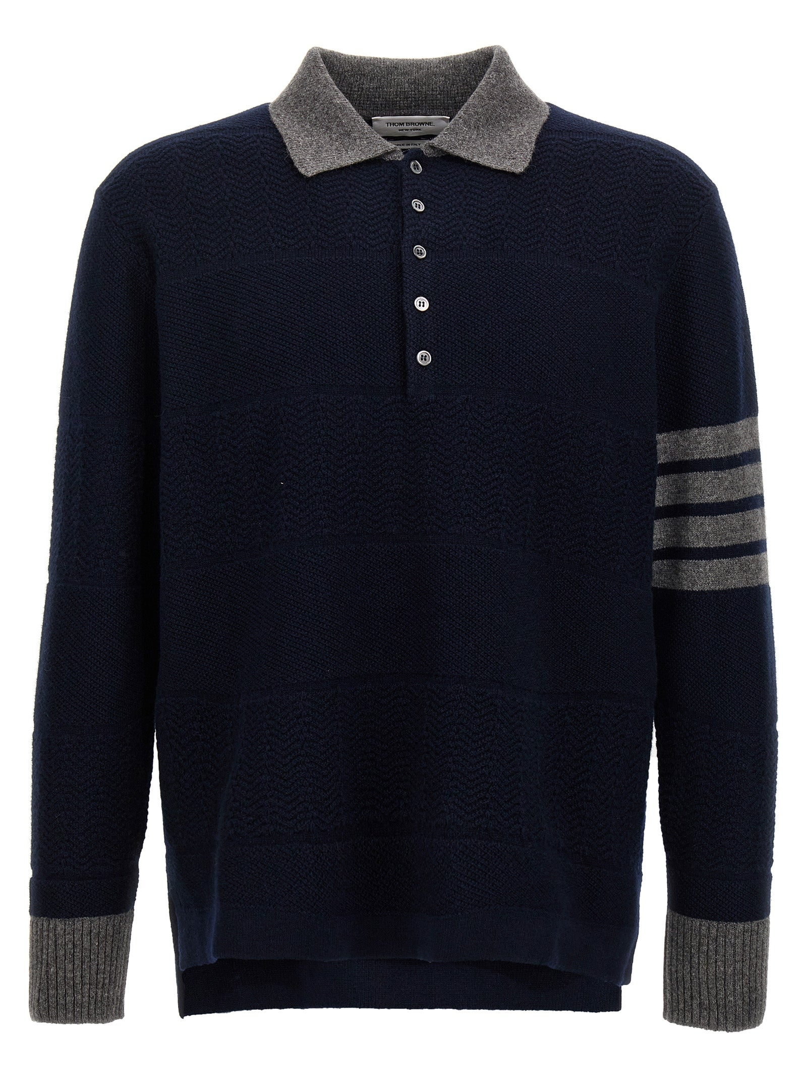 Wełniany koszulka „Teksturowane w paski rugby” wełniany sweter z kołnierzem i guzikami, kontrast 4 barów, długie rękawy mankietowe.