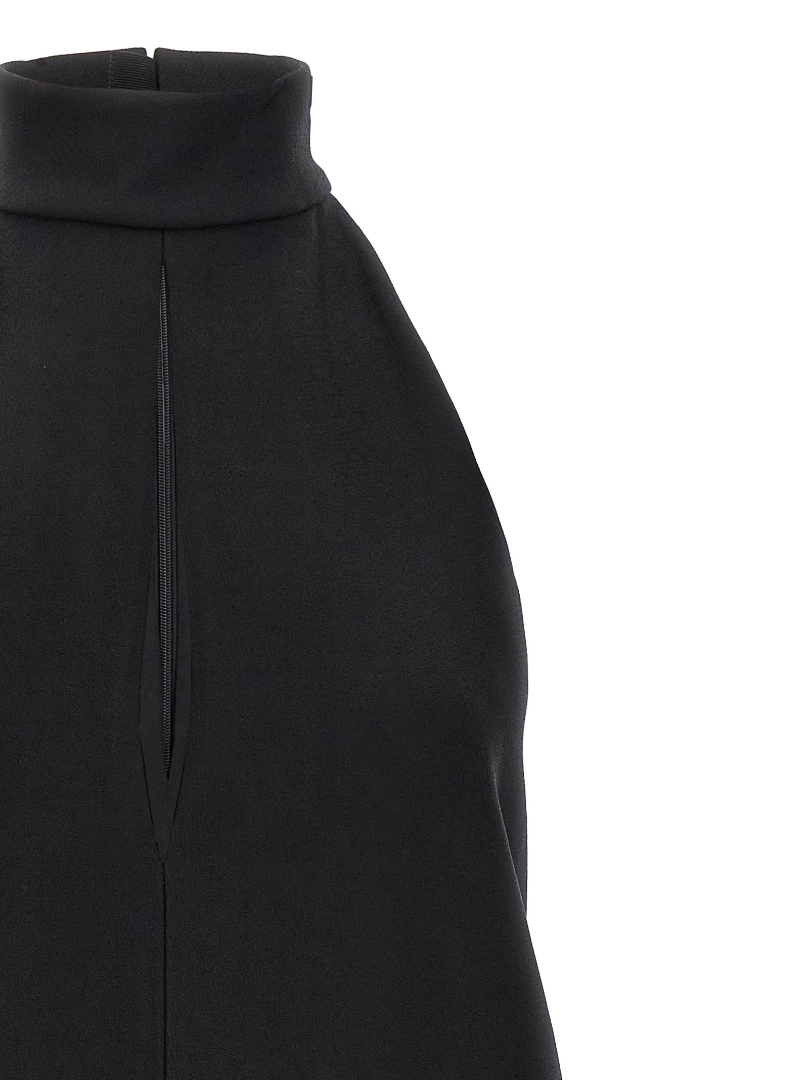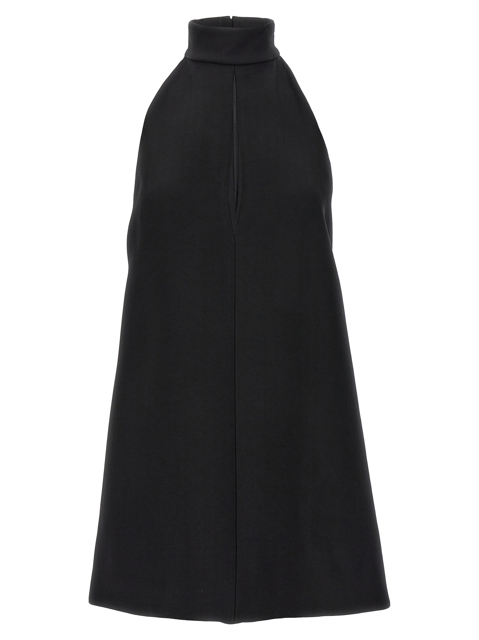 Wiskose soblè mini sukienka z koktajlem z wysokim szyją, bez rękawów i wycięciem centralnym.