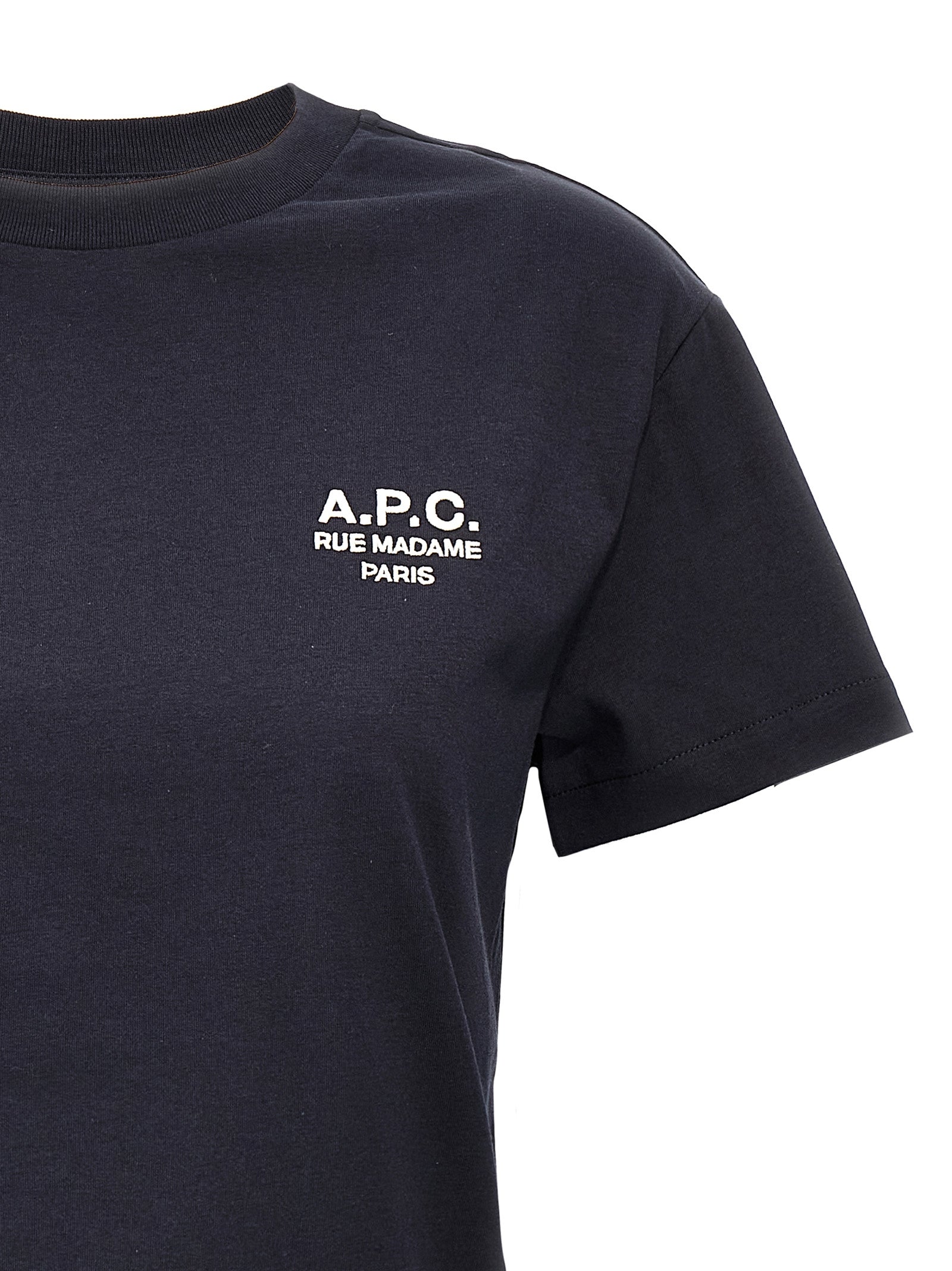 Bawełniana koszulka „Boxy Rue Madame” z haftem przedniego logo, szyja załogi, krótkie rękawy. Zrównoważony: ten produkt jest wykonany z bawełny ekologicznej.