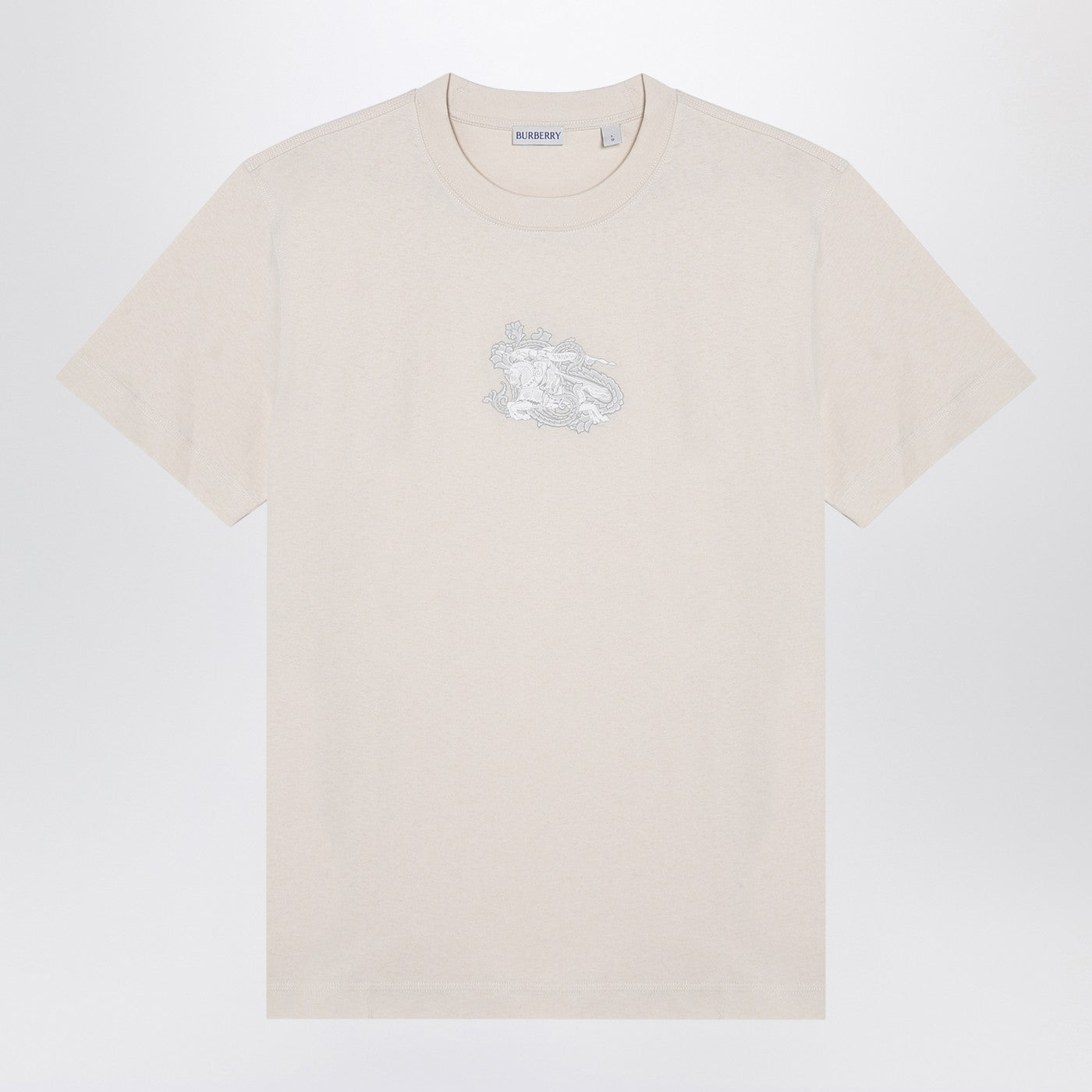 Burberry Ivory Cotton T Shirt z logo wydrukiem