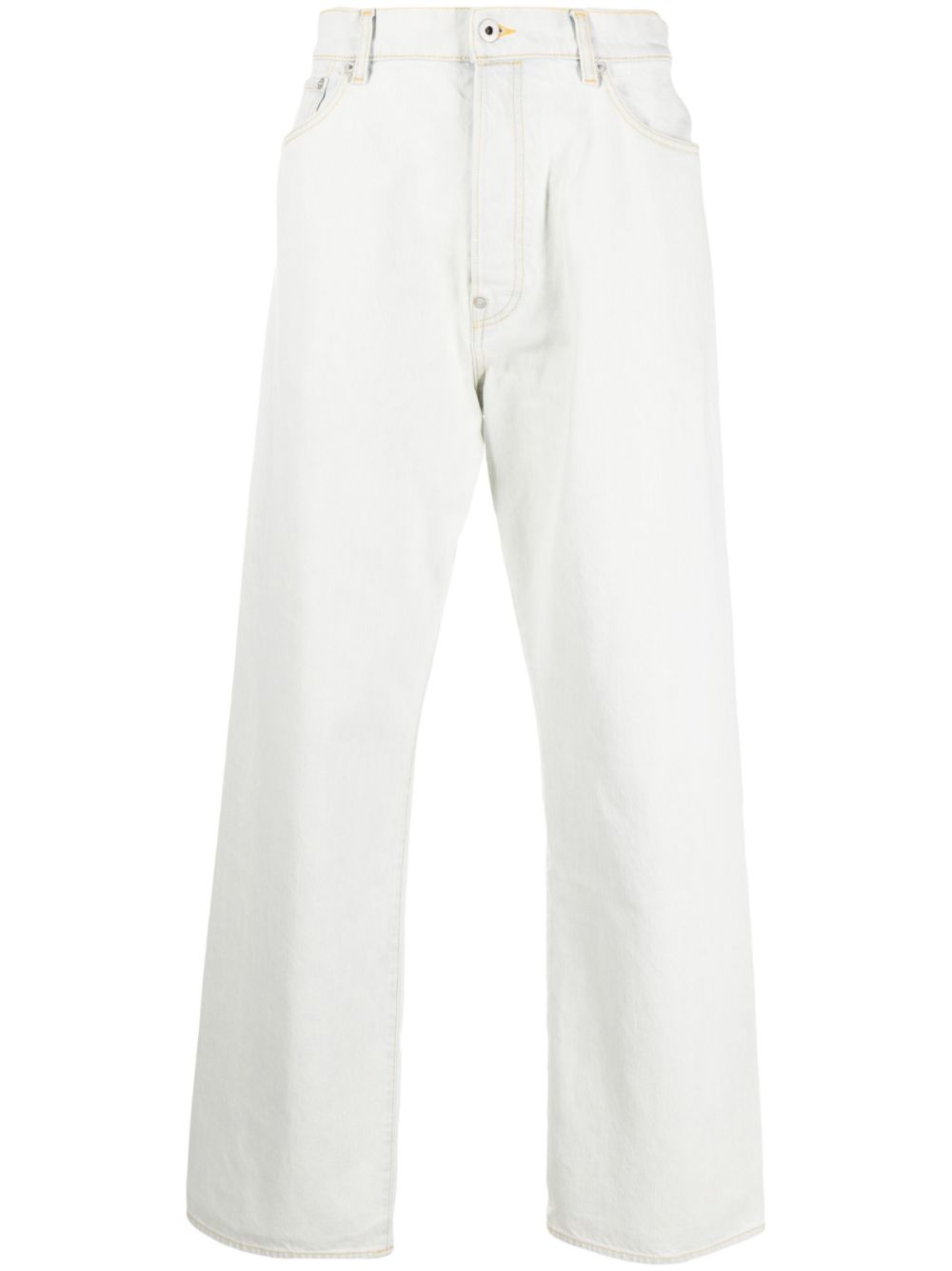 Suisen straight-leg jeans from KENZO featuring light blue, bleach wash, cotton, mid-rise, belt loops, concealed fly and button fastening, classic five pockets, embroidered logo to the rear and straight leg.