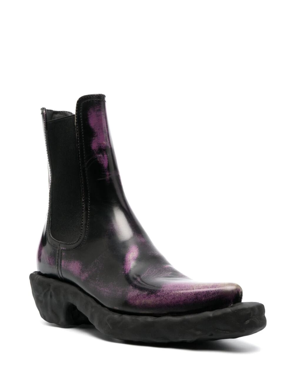 Fioletowe fioletowe/czarne skórzane cielęce efekt rozpylania spiczasty palec bojowy elastyczne panele boczne markowe wkładki wkładka grubej gumowej podeszwa Ten przedmiot jest wytwarzany ze skórą, która została wyprodukowana w certyfikowanej skórze roboczej (LWG) lub tannery ICEC, upewniając się, że proces produkcji ma zmniejszenie wpływu na środowisko. Dowiedz się więcej o tym, co czyni produkt świadomy na naszej stronie świadomych kryteriów