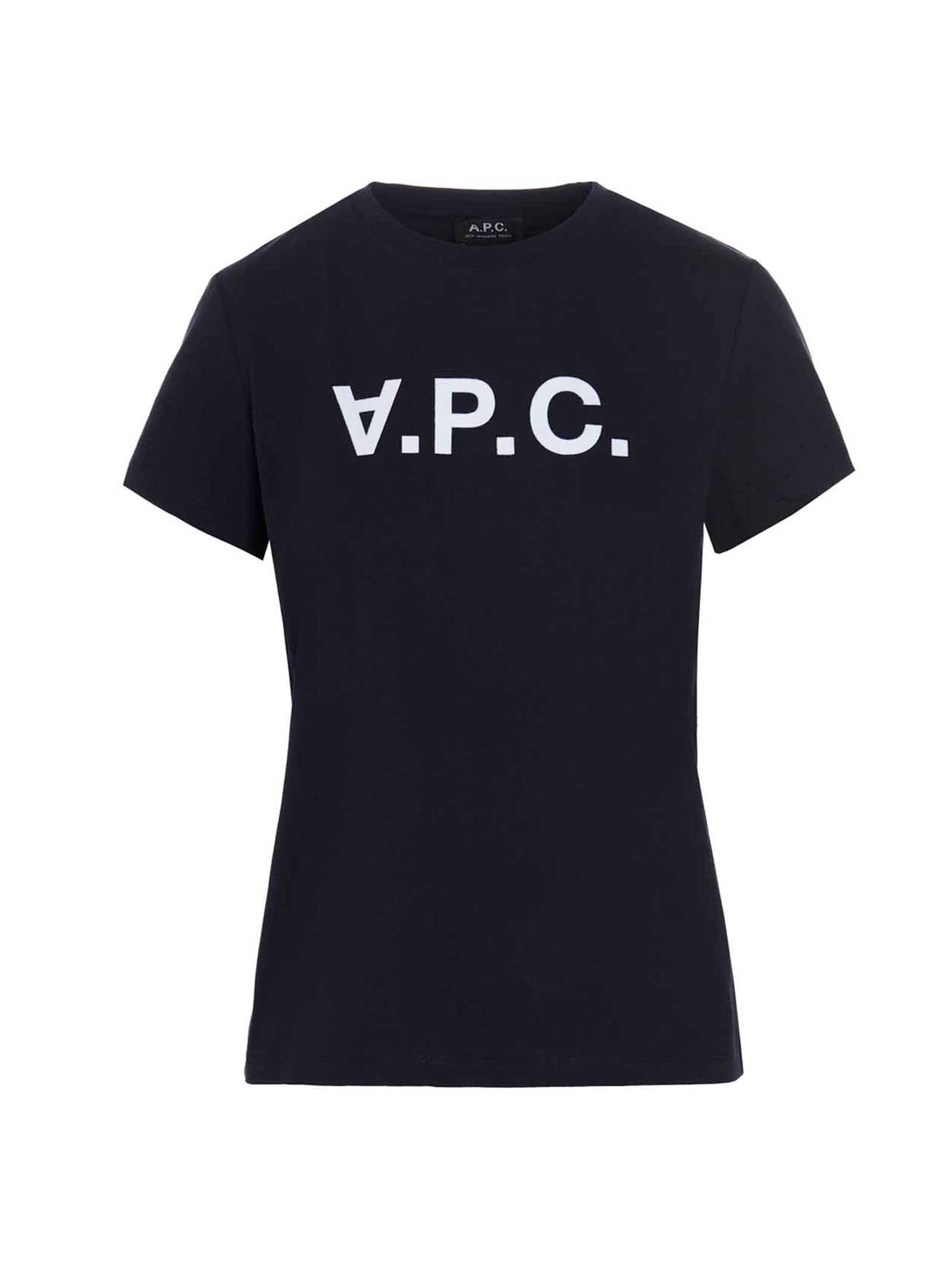 Niebieska bawełna „VPC”, koszulka z załogi z krótkim rękawami i stadym nadrukiem.