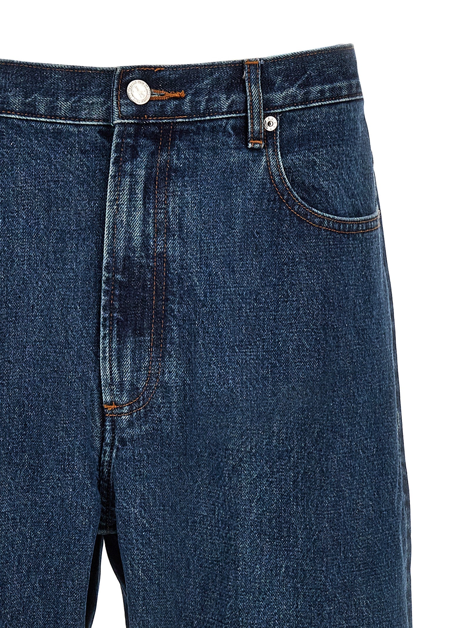 „Zrelaksowane” bawełniane jeansy, zamykanie zamków i guzików, pięć kieszeni.