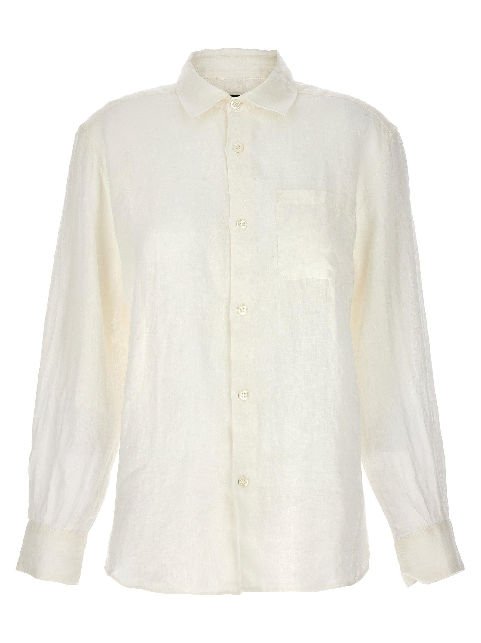 Koszula lniana „Sela” z zamknięciem guzików i kieszenią na klatkę piersiową.