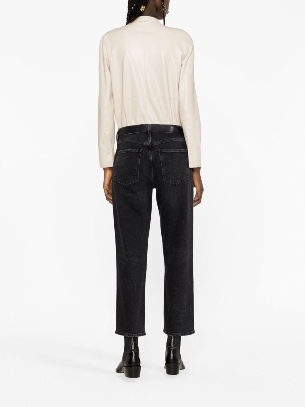Kye przycięte jeansy z prostymi nogawkami z Agolde z ciemnoszarym, organicznym mieszanką bawełny, ciemnego płukania, efektu średniego, efektem wąsów, przyciętymi nogami, przednim przyciskiem i zamkiem zamka i klasycznym pięć kieszeni. Ten przedmiot jest wykonany z co najmniej 50% materiałów organicznych. Dowiedz się więcej o tym, co czyni produkt świadomy na naszej świadomej stronie kryteriów.