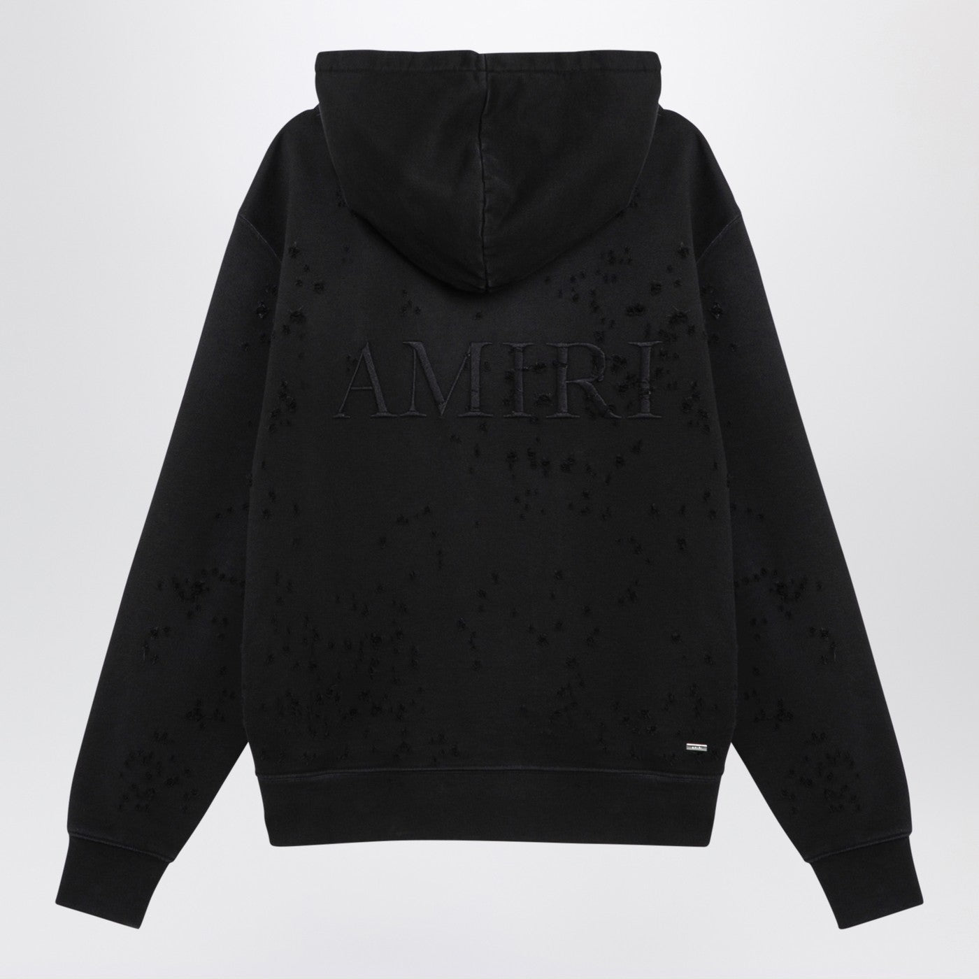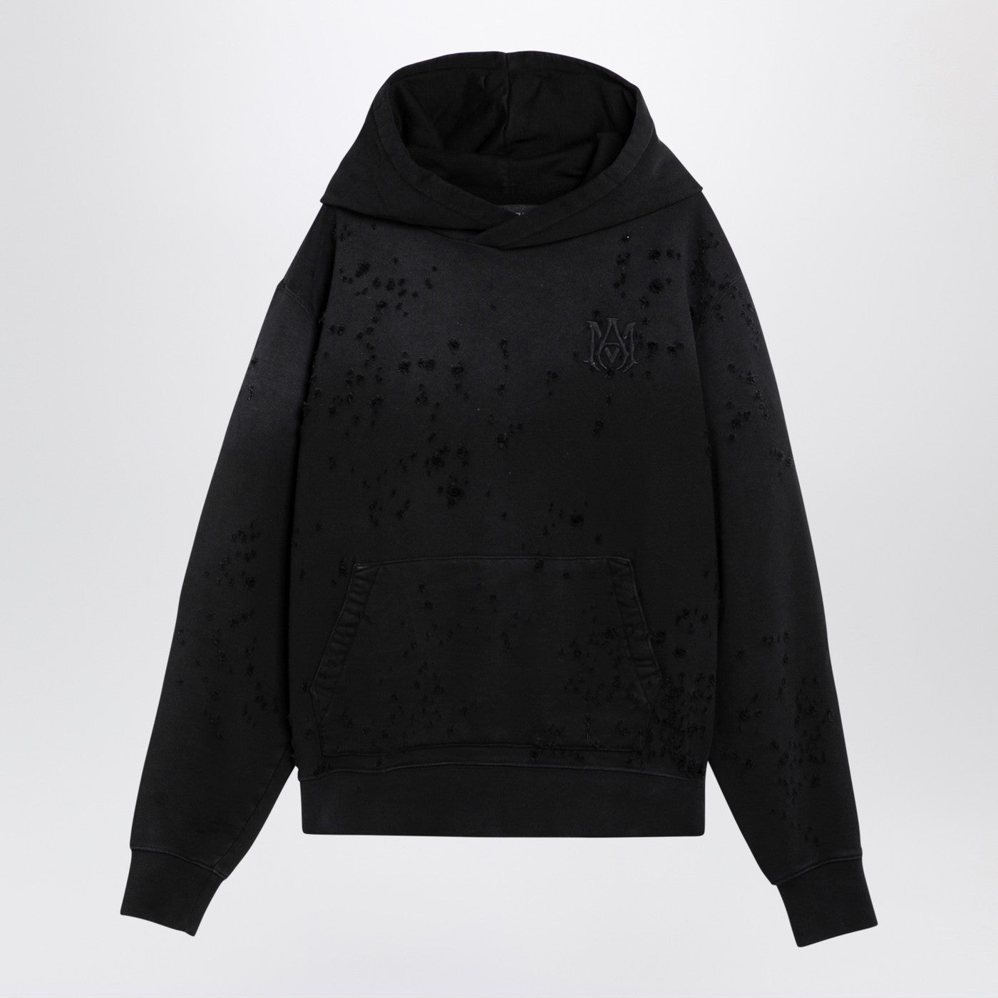 Czarna bawełniana bluza z kapturem Amiri z wszechstronnym detalami efektu, kapturem, haftem logo na klatce piersiowej i tylnej, przedniej kieszeni torebki, żebrowane mankiety i rąbek.