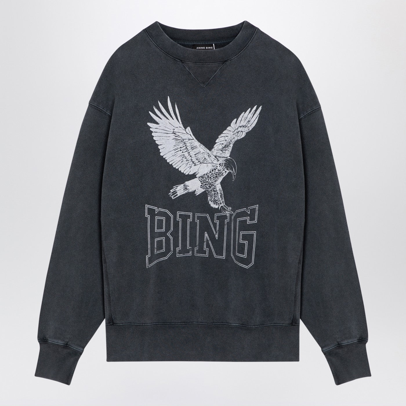 Bluza z załogą ANINE BING w umytej czarnej bawełnie z przednią nadrukiem, długie rękawy z niskimi ramionami, żebrowane mankiety i rąbek.