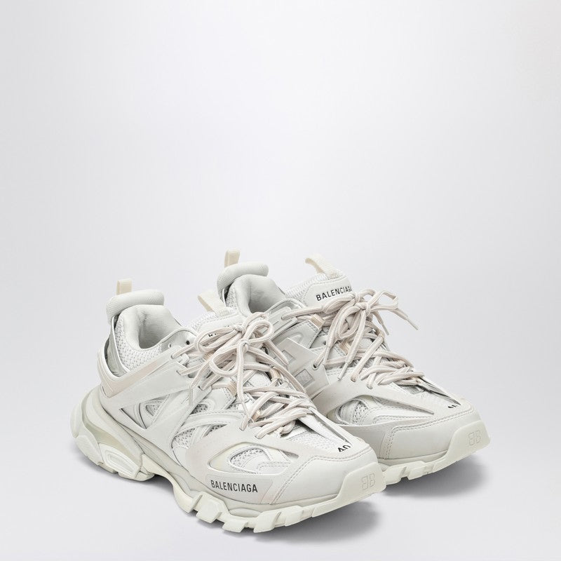 Białe trampki Balenciaga w siatce i nylonie, zawierające dynamiczny projekt, koronkowe zamknięcie, druk logo kontrastu i gumową podeszwę.